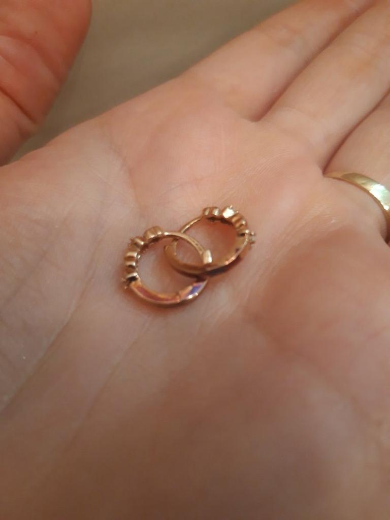 Revin cu recenzie după șase luni de folosire. Cerceii sunt minunați. Fetița mea ia purtat în continuu și a făcut baie cu ei. Nu s-au înnegrit. Sunt comozi.