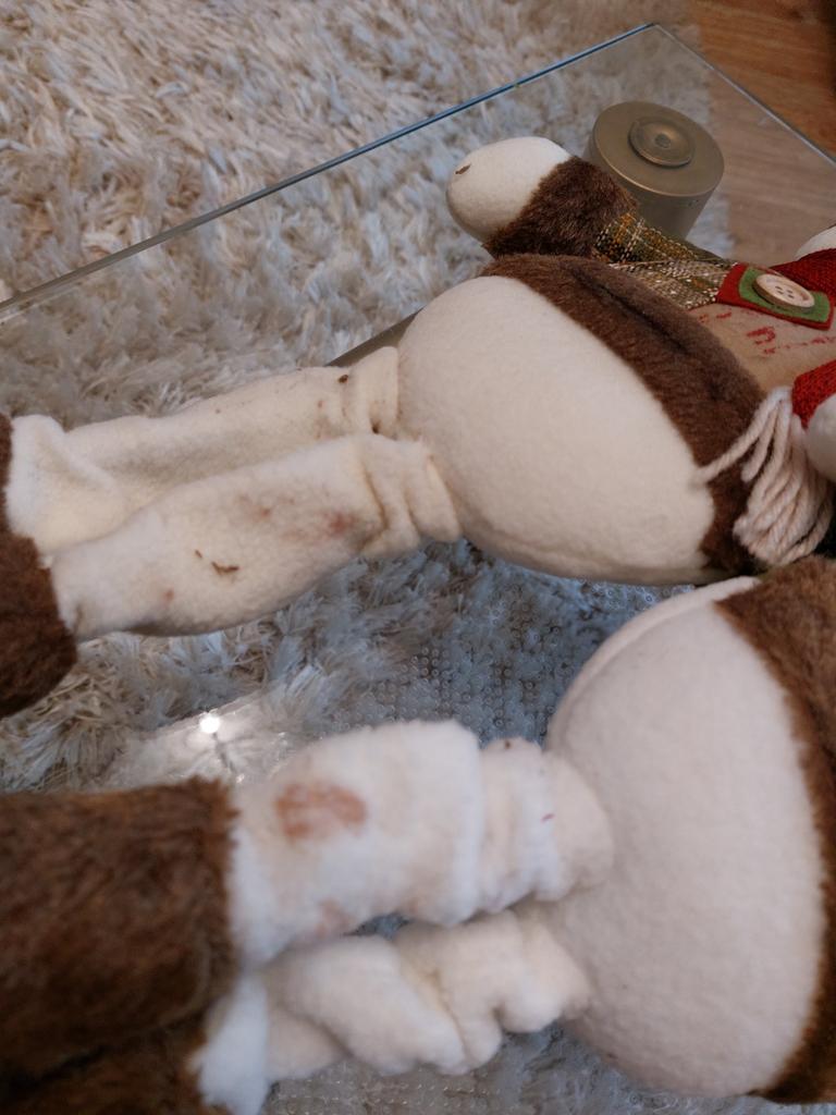 Buna ziua. Moș Crăciun are o gaură în pâslă de pe față și vârful nasului nu mai are culoare. Dezamăgit.