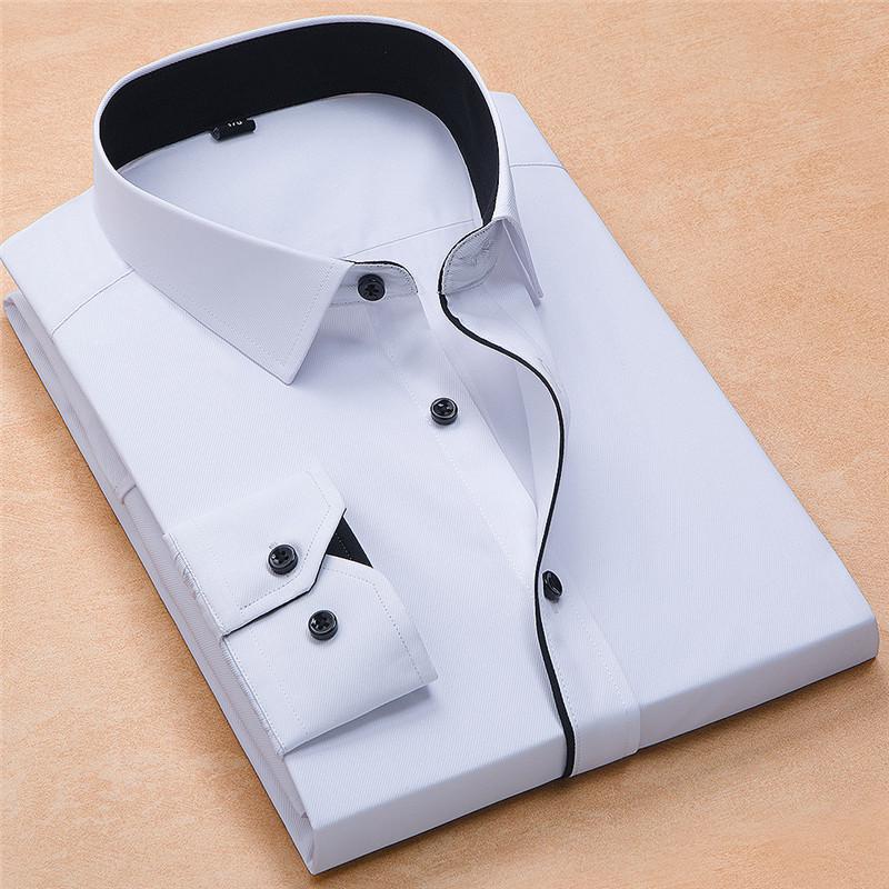 Marime mare, maneca lunga, clasic, twill solid, camasi rochie de afaceri formale, top solid barbati
