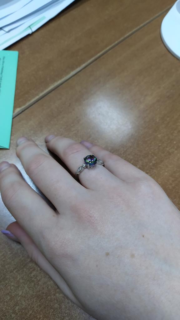 Umcho Inel cu topaz mistic cu foc curcubeu autentic