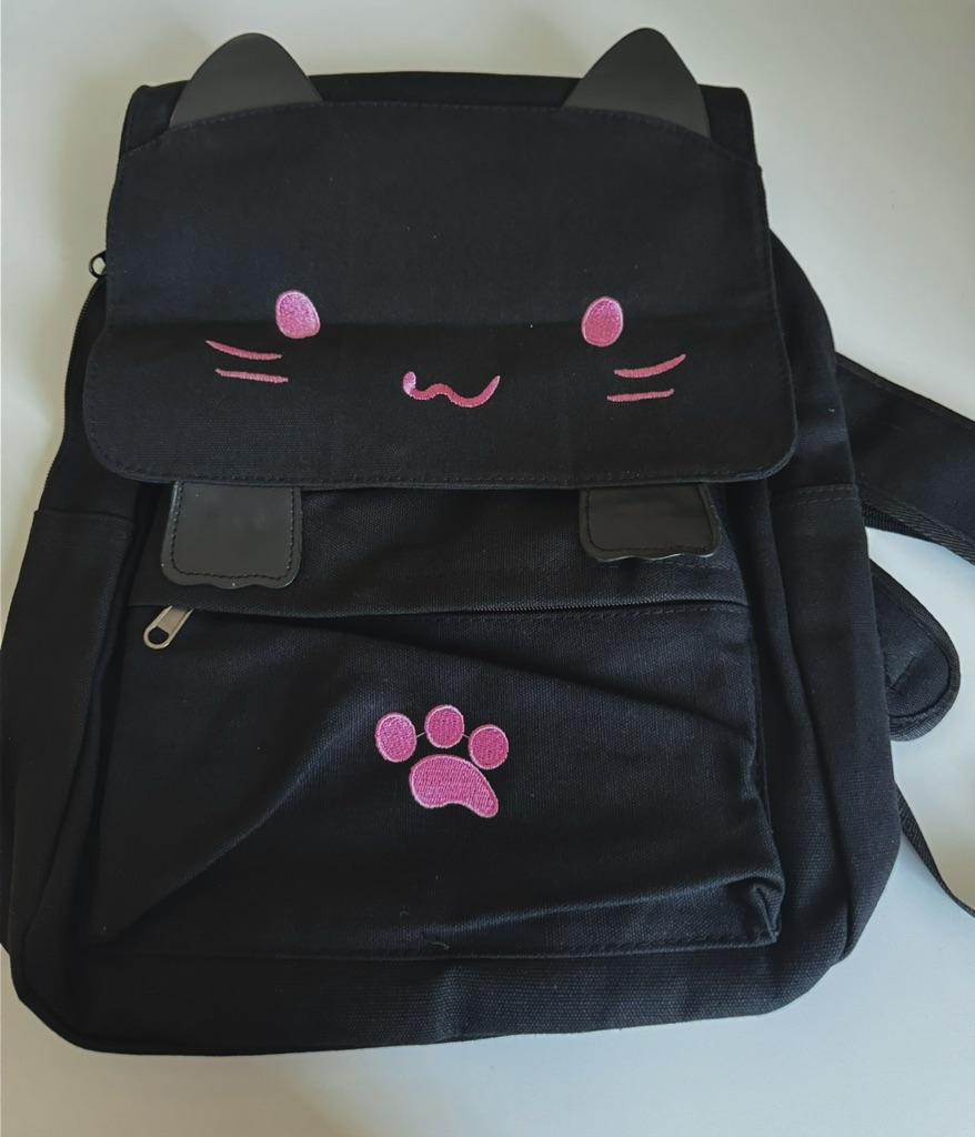 SCIONE Rucsac drăguț din pânză cu pisică, broderie din desene animate pentru fete adolescente, rucsac mochila de școală, geantă