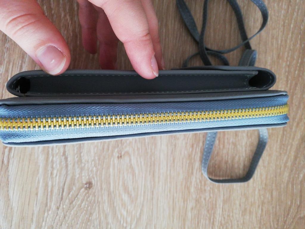 Pachetul a mers pentru o lună. După cum este scris în recenzii, geanta este bună, mică și convenabilă, calitatea este destul de bună. Culoarea este gri-albastru. As vrea sa adaug: as vrea ca dantela sa fie putin mai lata. Telefonul meu de 5,5 inchi abia încape în buzunarul smartphone-ului. În rest, o geantă de mână confortabilă și convenabilă.