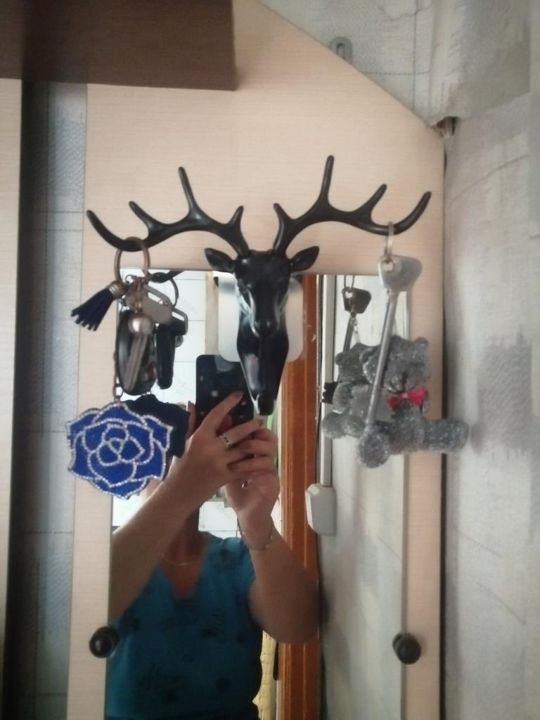 Perfect, am pus acest cârlig de coarne de cap de cerb 🪝 în ușa dulapului soțului 🚪 😀 👌