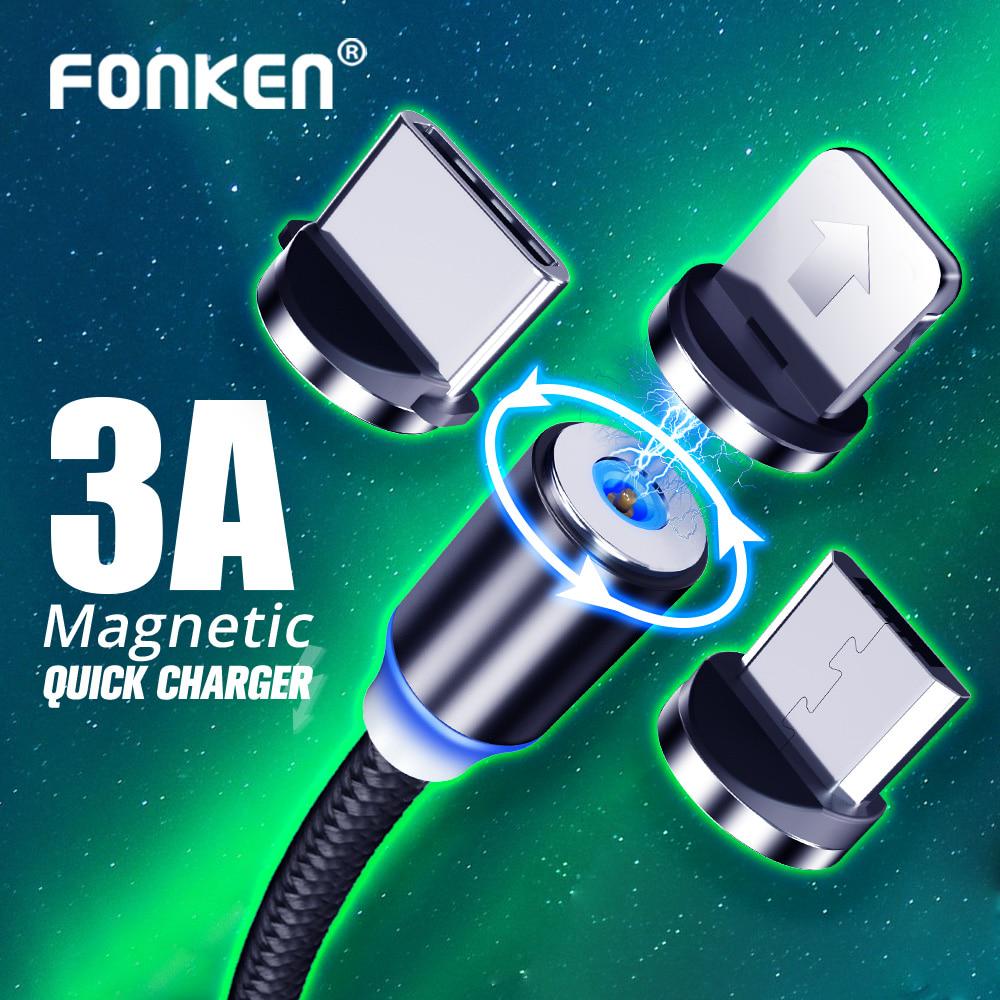 FONKEN Cablu magnetic Cablu Micro USB tip C Încărcare pentru telefon Cablu de încărcare cu magnet rapid pentru iPhone Samsung Huawei Redmi