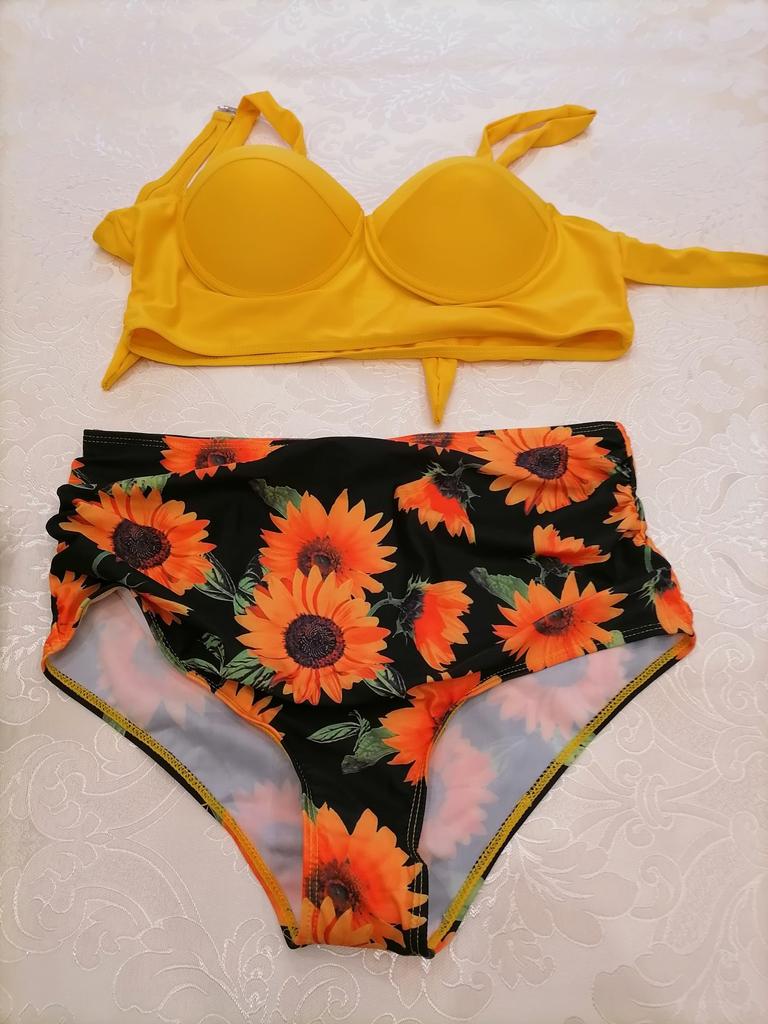 Set de bikini sexy pentru femei Bandaj Push Up Costum de baie Căptușit Costum de baie de vară Imbracaminte de plajă cu talie înaltă Sumflower Set 2 buc