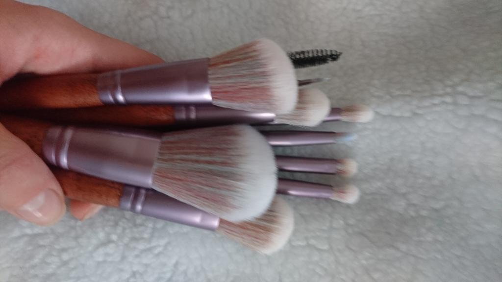 Set de pensule de machiaj 11 buc. Fond de ten, pudră, fard de obraz, fard de ochi, set de instrumente pentru pensule de machiaj din lemn