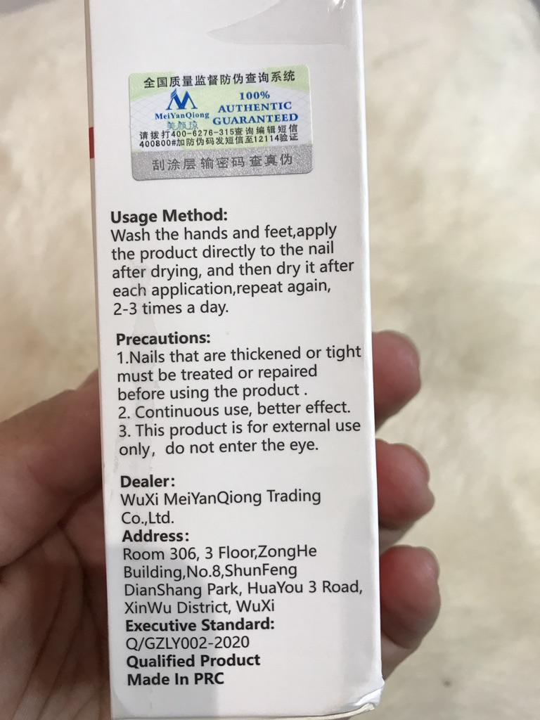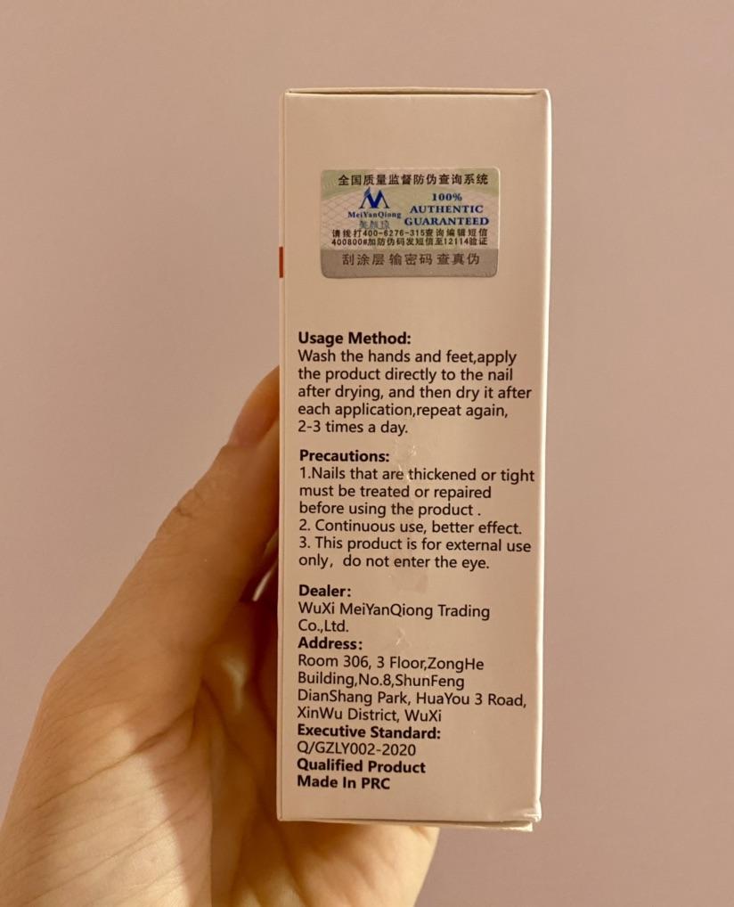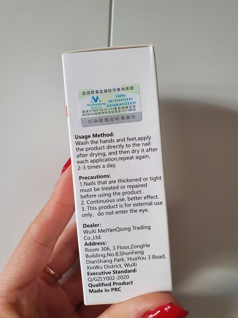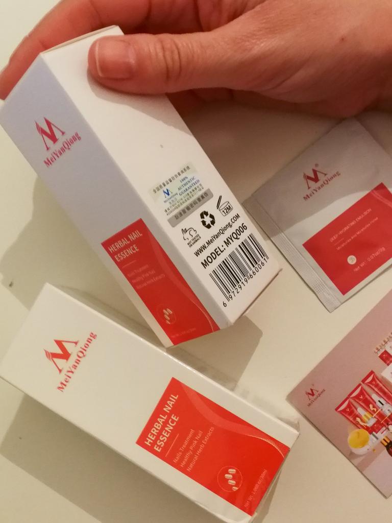Serul pentru unghii MeiYanQiong ✨ Acest ser poate fi folosit în două moduri diferite: 1- Ca tratament pentru ciuperca din unghiile mainilor si picioarelor (pentru a le elimina). Ceea ce este foarte convenabil dacă folosești mănuși de latex multe ore sau dacă mergi la piscine publice. Tratamentul de îndepărtare poate dura până la două luni. 2- Ca tratament pentru întărirea unghiilor. Unghiile sănătoase pot fi întărite cu ajutorul acestui ser. În două săptămâni unghiile se simt mai sănătoase. Datorită aplicatorului său de picături, trebuie să aplicați câte o picătură pe fiecare unghie cu mâinile și picioarele curate. Poate fi folosit o dată pe zi. Are o aroma usoara si lasa o senzatie de prospetime foarte placuta.. Este, de asemenea, un produs care nu este testat pe animale 💖 Il testez de cateva zile si sunt foarte multumit. Peste o lună voi adăuga mai multe informații despre rezultate 💖 De asemenea, vânzătorul a fost foarte amabil și a adăugat două mostre de cremă de față din aceeași gamă. Il recomand 100%. A durat foarte puțin timp să ajungă în Spania și vânzătorul a împachetat foarte bine comanda, astfel încât produsul să nu fie deteriorat.
