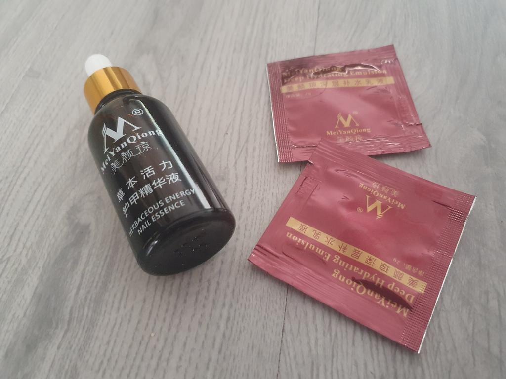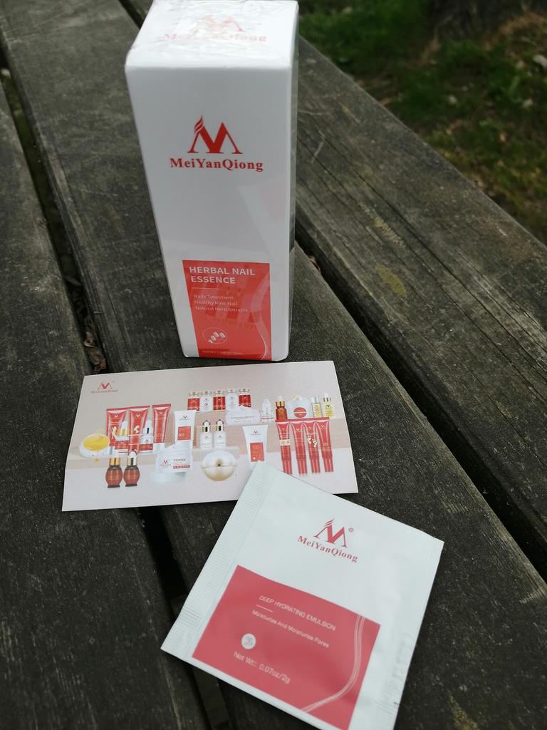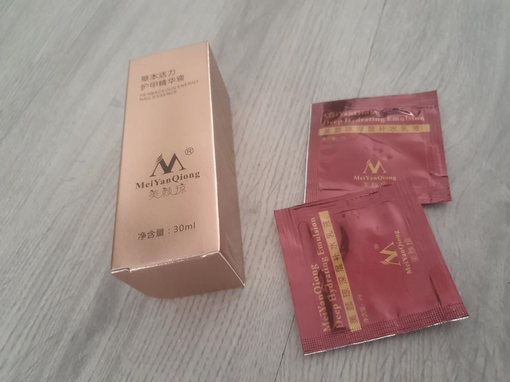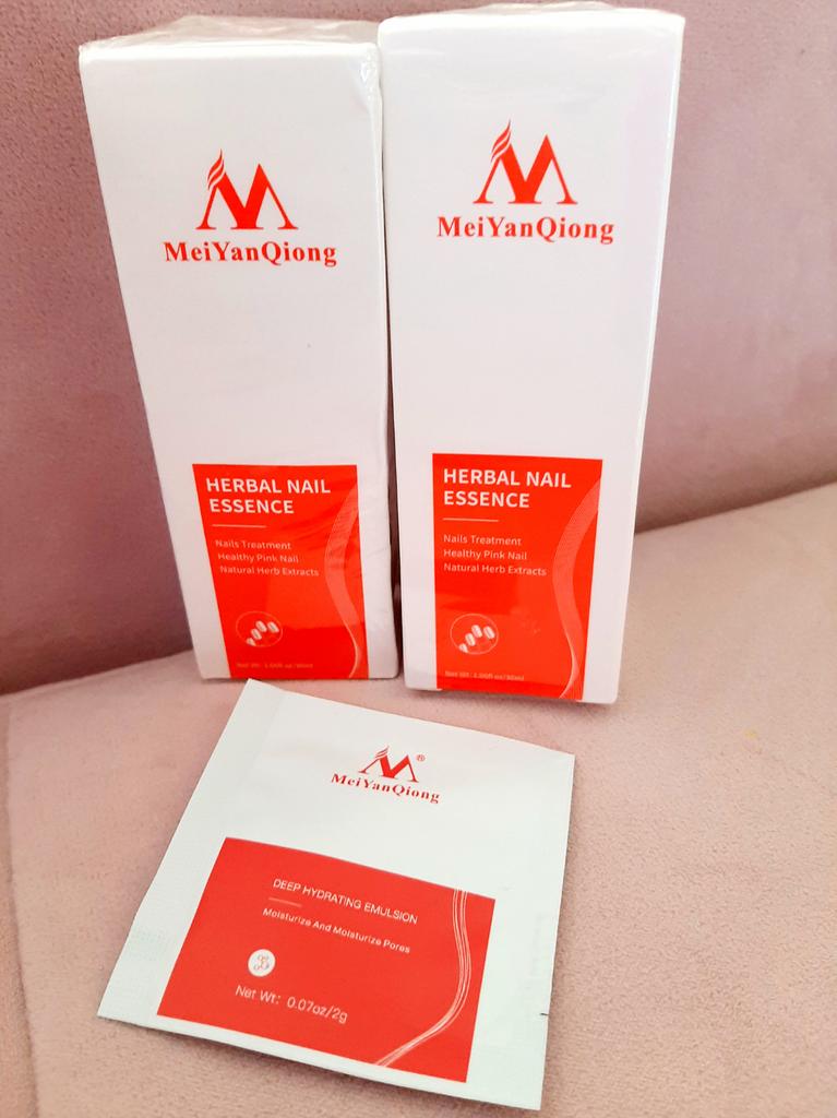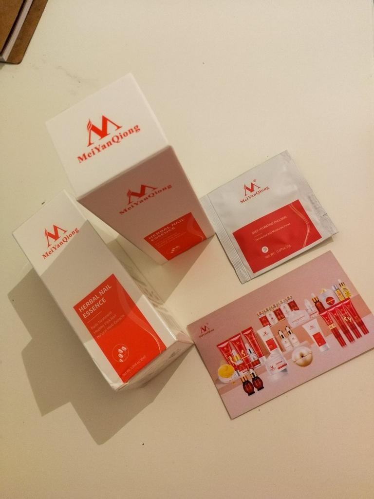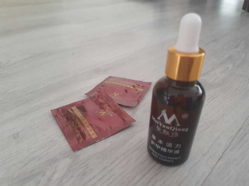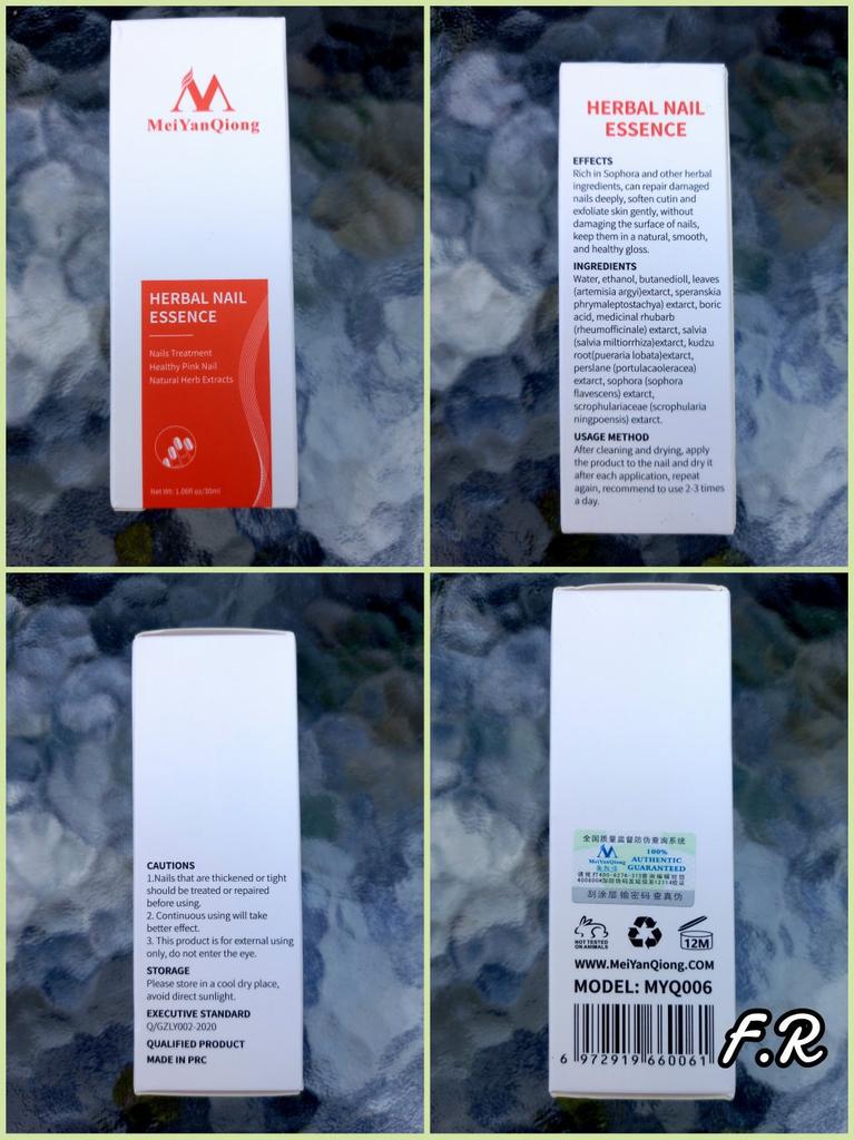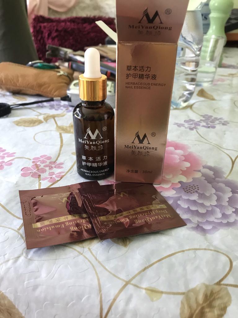 HERBAL NAIL ESSENCE de MeiYanQiong! ❤️ EFECTE: Bogat în Sophora și alte ingrediente din plante, poate repara unghiile deteriorate în profunzime, înmoaie cutina și exfoliează pielea ușor, fără a deteriora suprafața unghiilor, le păstrează într-un luciu natural, neted și sănătos.. INGREDIENTE: Apă, etanol, butandiol, frunze (artemisia argyi) extarct, speranskia (phrymaleptostachya) extarct, boricacid, rabarbă medicinală (rheumofficinale) extarct, salvia (salvia miltiorrhiza) extarct, rădăcină de kudzu (pueraria lobata), extarctportulatarcatoleracea (extarct) (sophora flavescens) extarct,scrophulariaceae (scrophularia ningpoensis) extarct. METODA DE UTILIZARE: După curățare și uscare, se aplică produsul pe unghie și se usucă după fiecare aplicare, se repetă din nou, se recomandă utilizarea de 2-3 ori pe zi. Livrarea a durat o lună pentru a ajunge în Grecia. 🇬🇷 Ușor de luat cu tine! De asemenea, vânzătorul a adăugat câteva mostre gratuite de cremă pentru cadou! 🎁 100% recomandat 💯 Place ! ❤️ Vă mulțumesc și vă iubesc MeiYanQiong și Joom! ❤