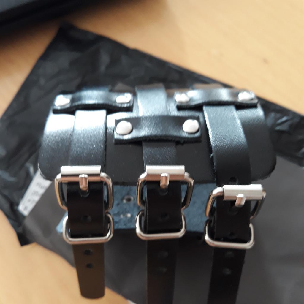 Comanda a sosit în 25 de zile. Calitatea nu este piele! Ceva presat sub piele. Corpul încă nu este plăcut la atingere, rigid, sper să se înmoaie. Pe încheietura mâinii late, ar trebui făcute noi găuri pe cea îngustă. După o săptămână de purtare, mirosul neplăcut a dispărut, brățara se înmoaie, totul este în regulă.