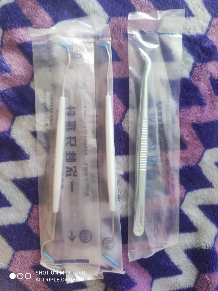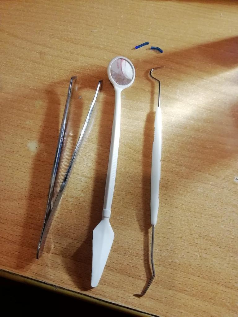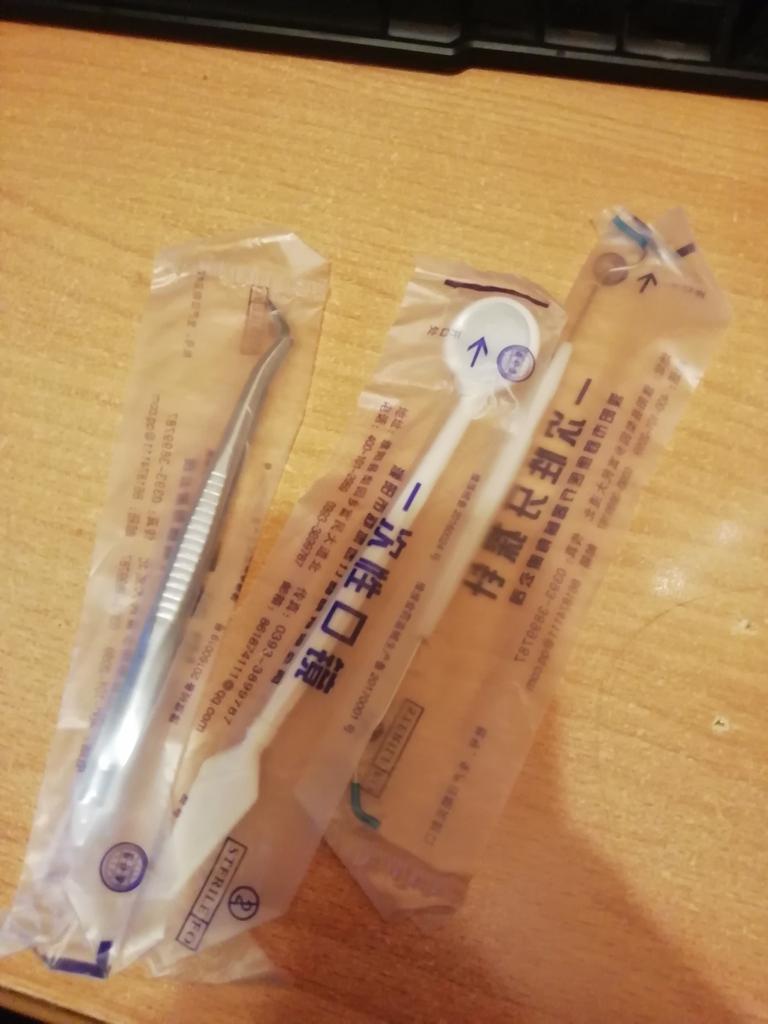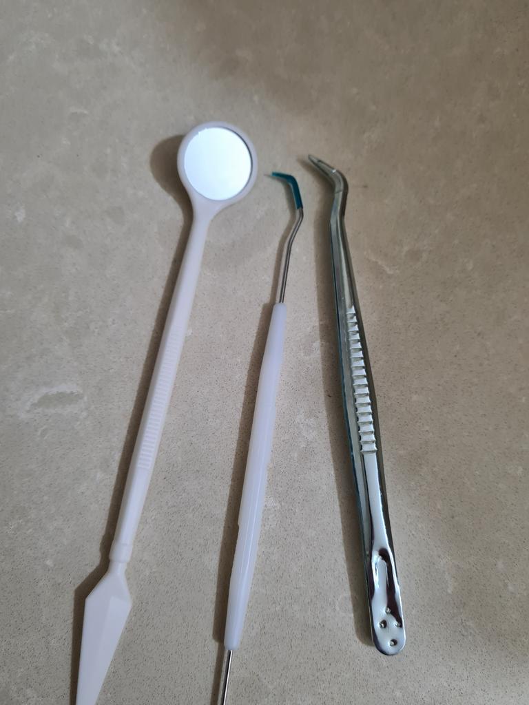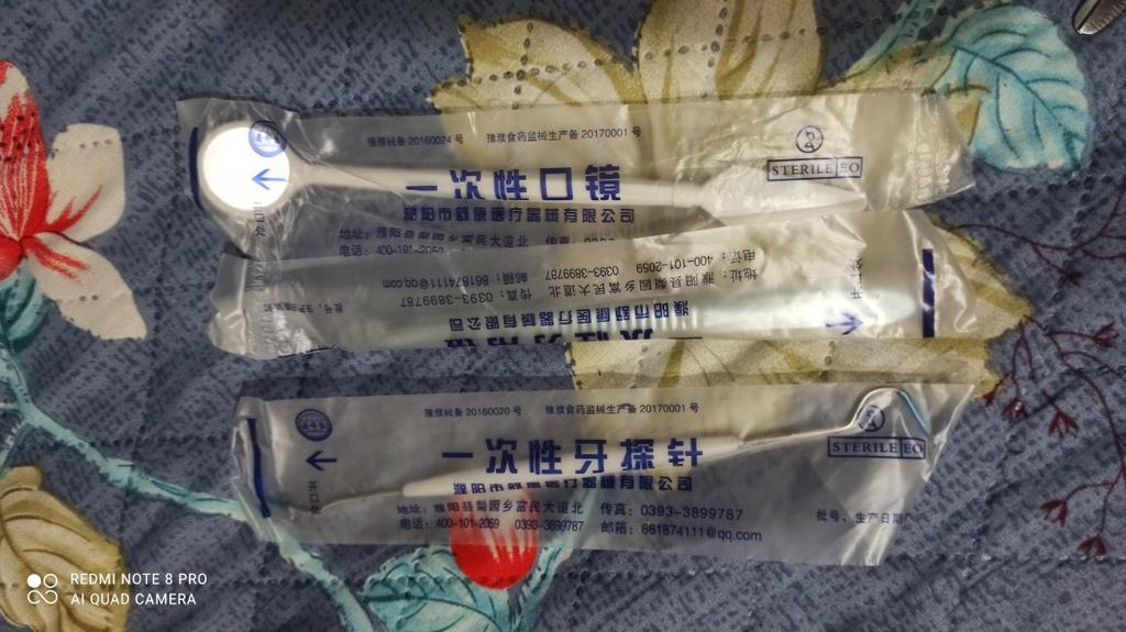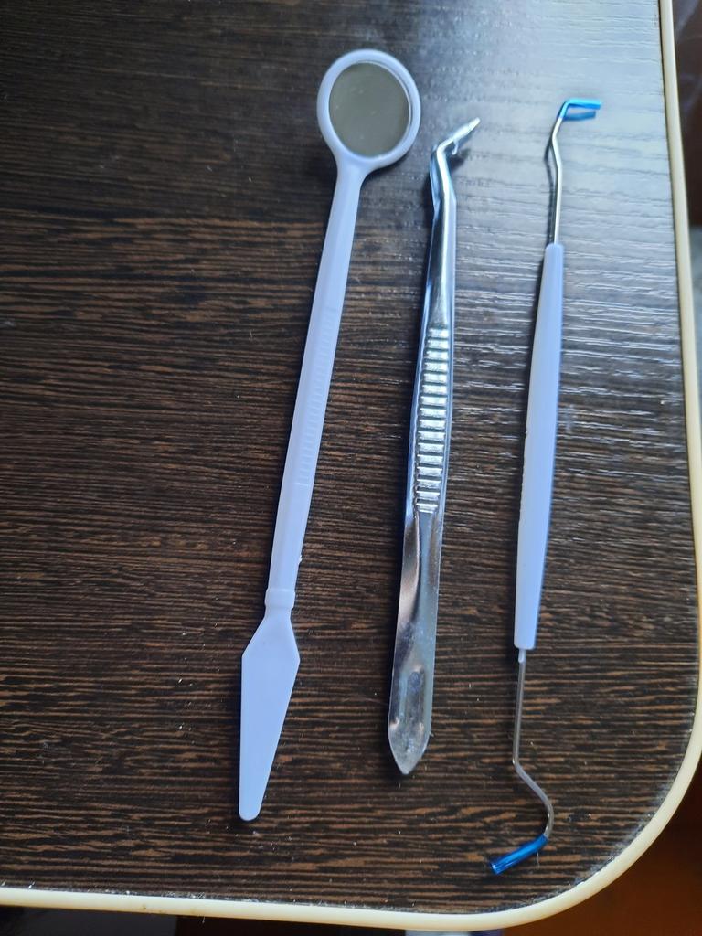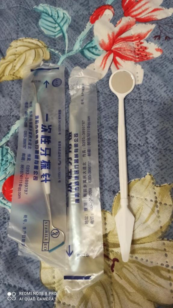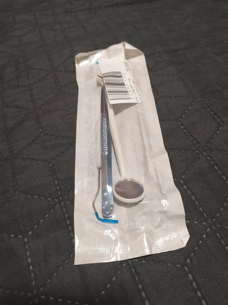 Se pare că acesta este un set steril de unică folosință, oglinda este din plastic, restul arată ca oțel inoxidabil.