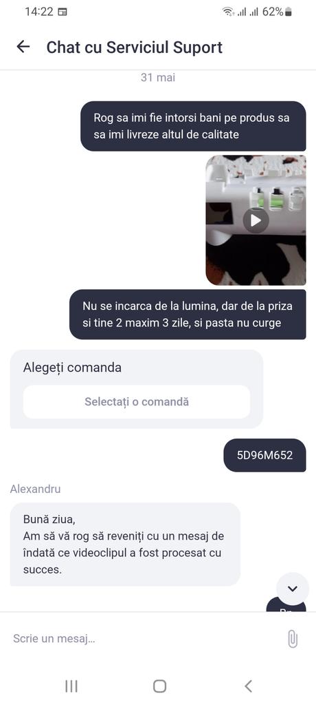 Pasta de dinti nu iese si nu se incarca de la lumina, nu recomand la nimeni...daca incarc la priza lucreaza 2 maxim 3 zile pe urma se descarca si iar treb sa o incarc, cum sa incarce daca acolo unde treb sa incarce de la lumina este pus doar sticla si gata, da cum ajunge la baterie , vreau sa imi intoarca banii inapoi