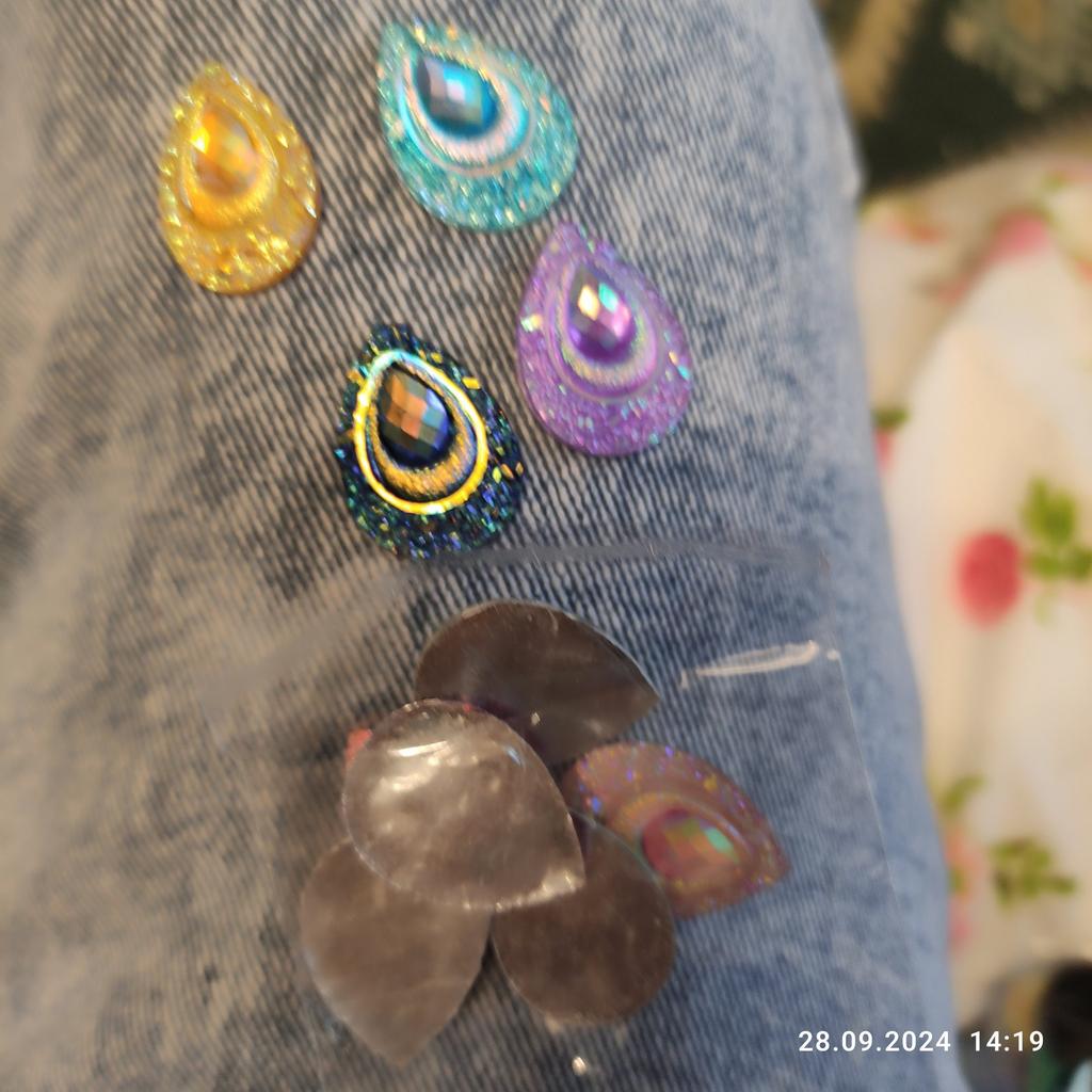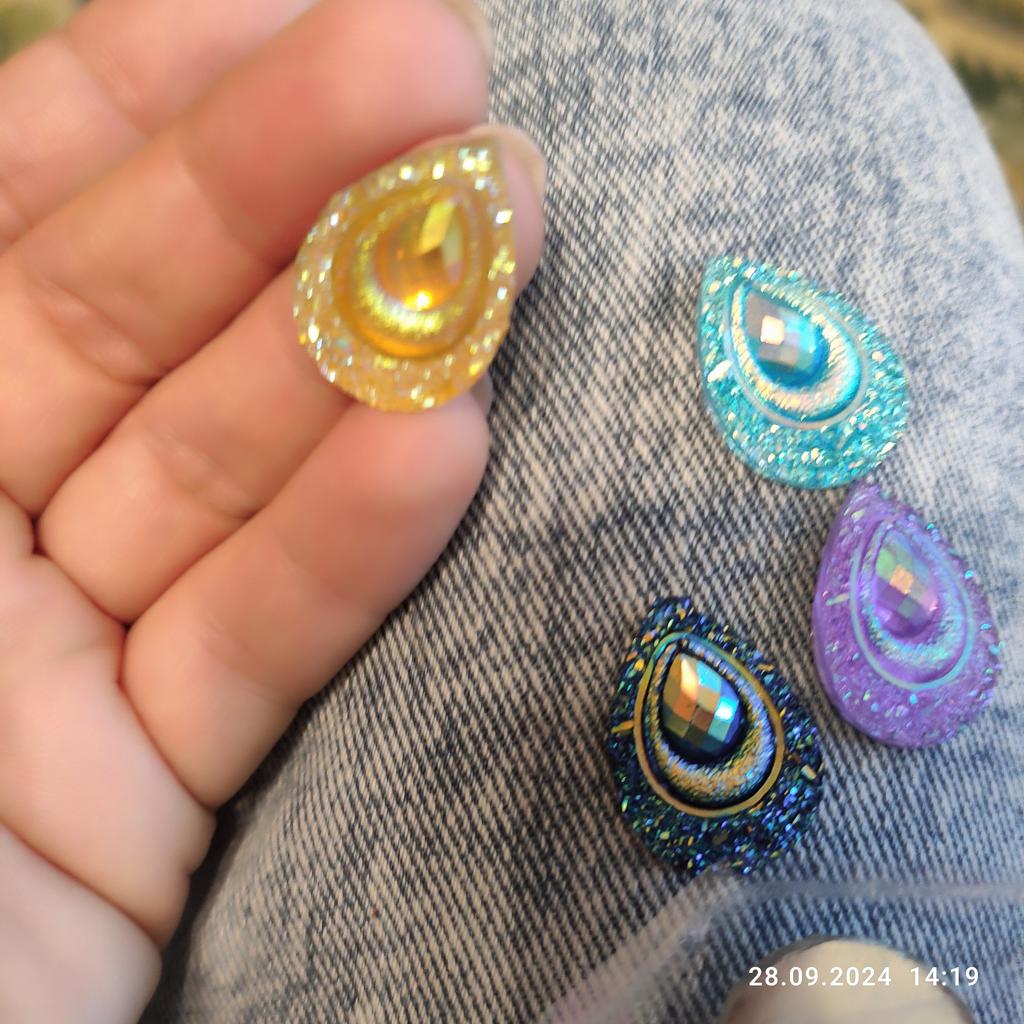 Livrarea a durat mai mult decât de obicei, dar sunt fericit că le-am primit bine. Ei chiar au nevoie de pene de păun drăguțe de culoare și design picături de rășină cu spatele plat. Ar fi fost foarte bine dacă ar veni cu găuri deja găurite în ele. Dar nu este o problemă, va trebui să o fac eu. Foarte multumit de comanda mea, abia astept sa fac ceva din ele.