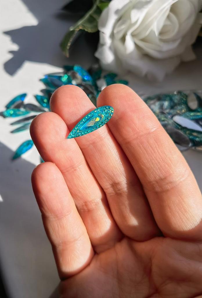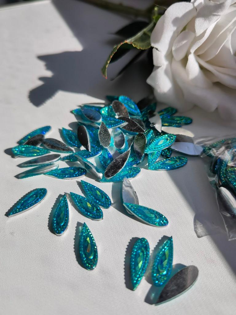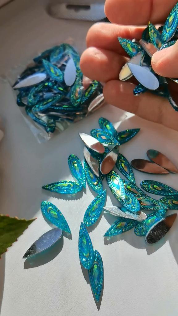 60 bucăți rășină AB lucioasă 6*20 mm ochi de păun lacrimă cu spate plat stras