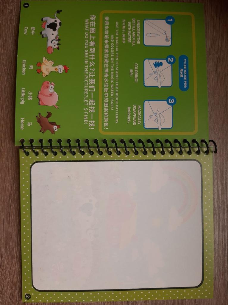 Cartea a venit în 2 săptămâni în Chișinău. Sunt 4 imagini pentru desenat. Ideea e interesanta, dar copilul meu nu are răbdare sa coloreze pentru ca pixul are griful cam subțire și trebuie sa colorezi mult timp în același loc ca sa apară un element mic.