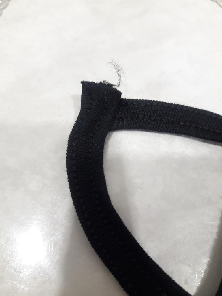 Imprimarea este decentrată și înclinată. Cusătura uneia dintre curele s-a desfășurat de la sine în momentul în care mi-am pus masca. Calitatea imprimării în sine nu este, de asemenea, cea mai bună: culoarea nu este consistentă din anumite motive.