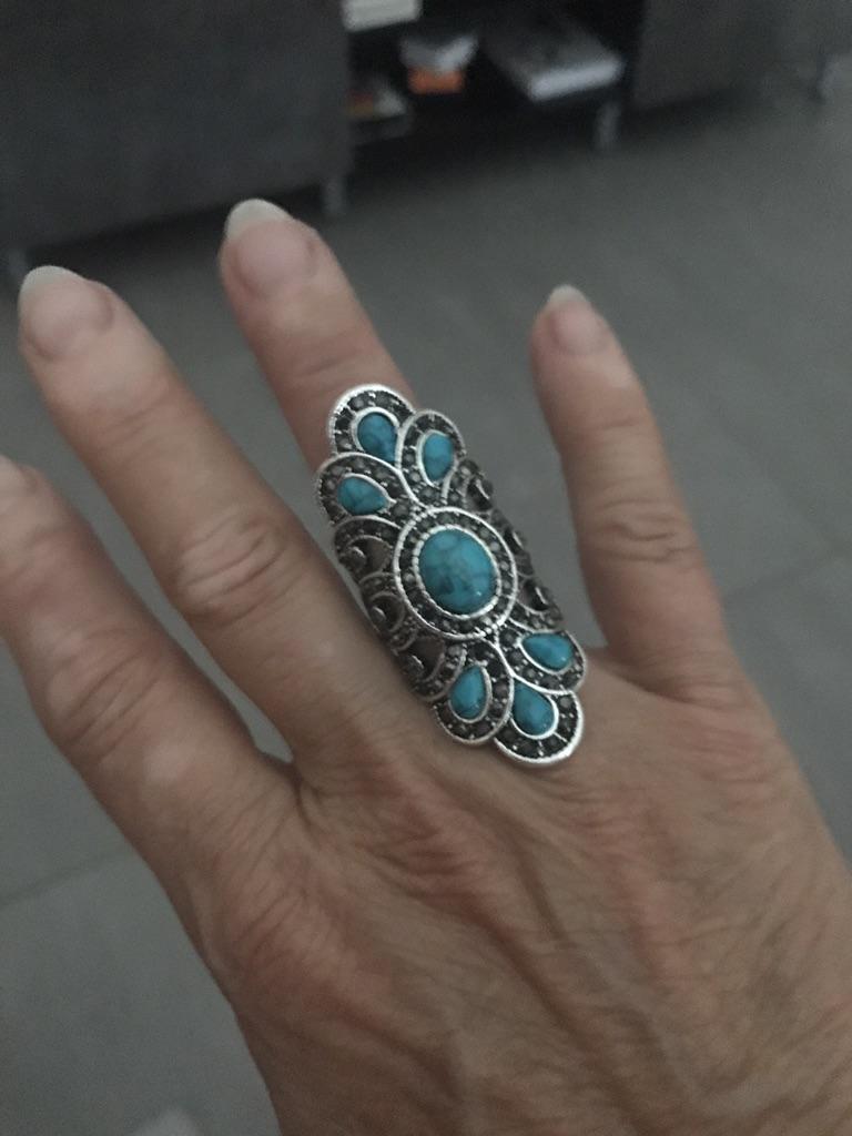 BLUELANS RINGS Finger Ring Party Vintage Turcoaz Hollow Inlayed Simetric Bijuterii