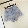 WTEMPO Florile brodate sunt subțiri, în stil colegial, pantaloni scurți din dantelă de denim pentru femei cu picioare largi
