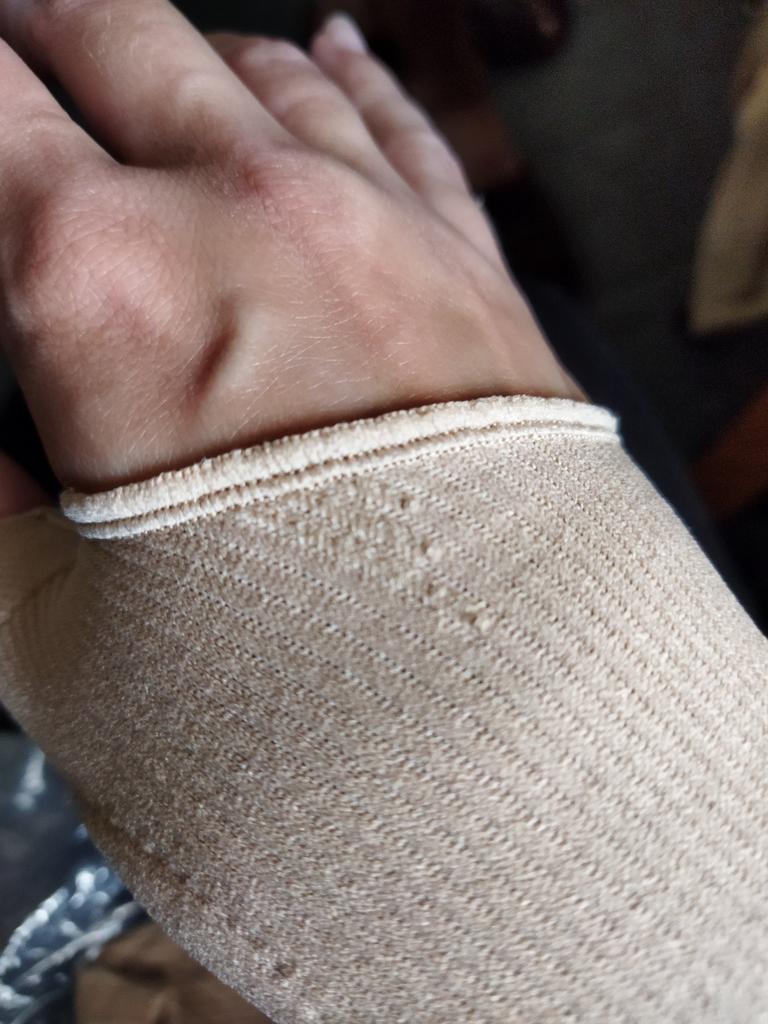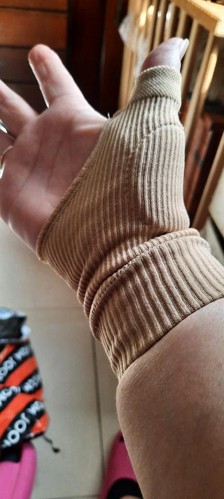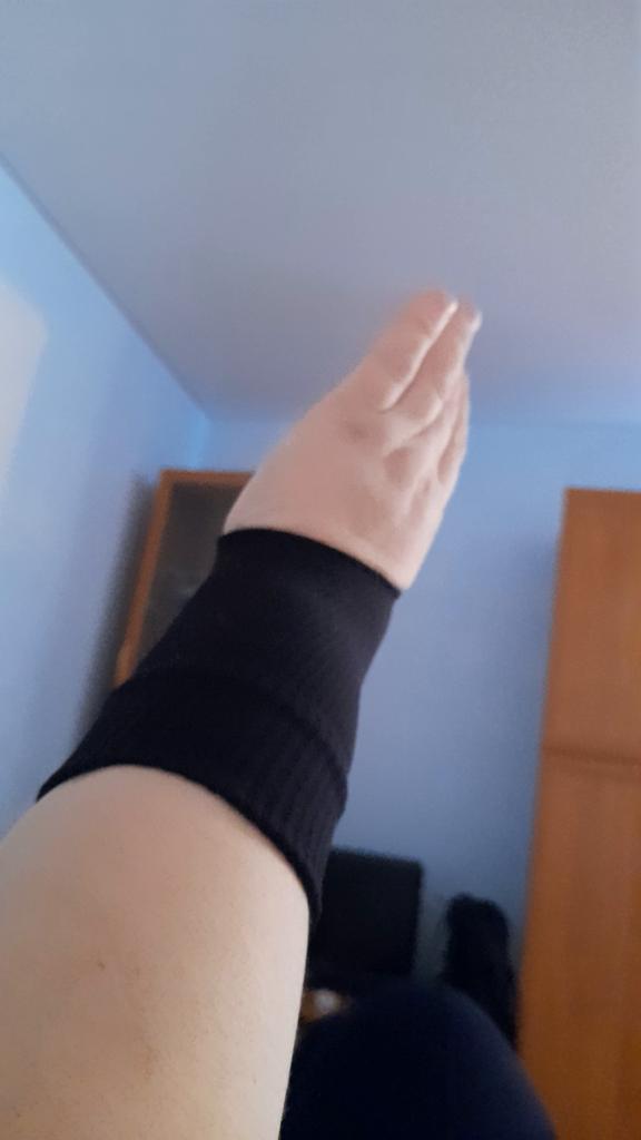 Nu mi-a plăcut cum a fost cusut, cusătura de sus iese în afară, sunt cârlige🙄. Nu se așează uniform pe mână, din această cauză nu are rost în acest sprijin. Si de ce marimea L???