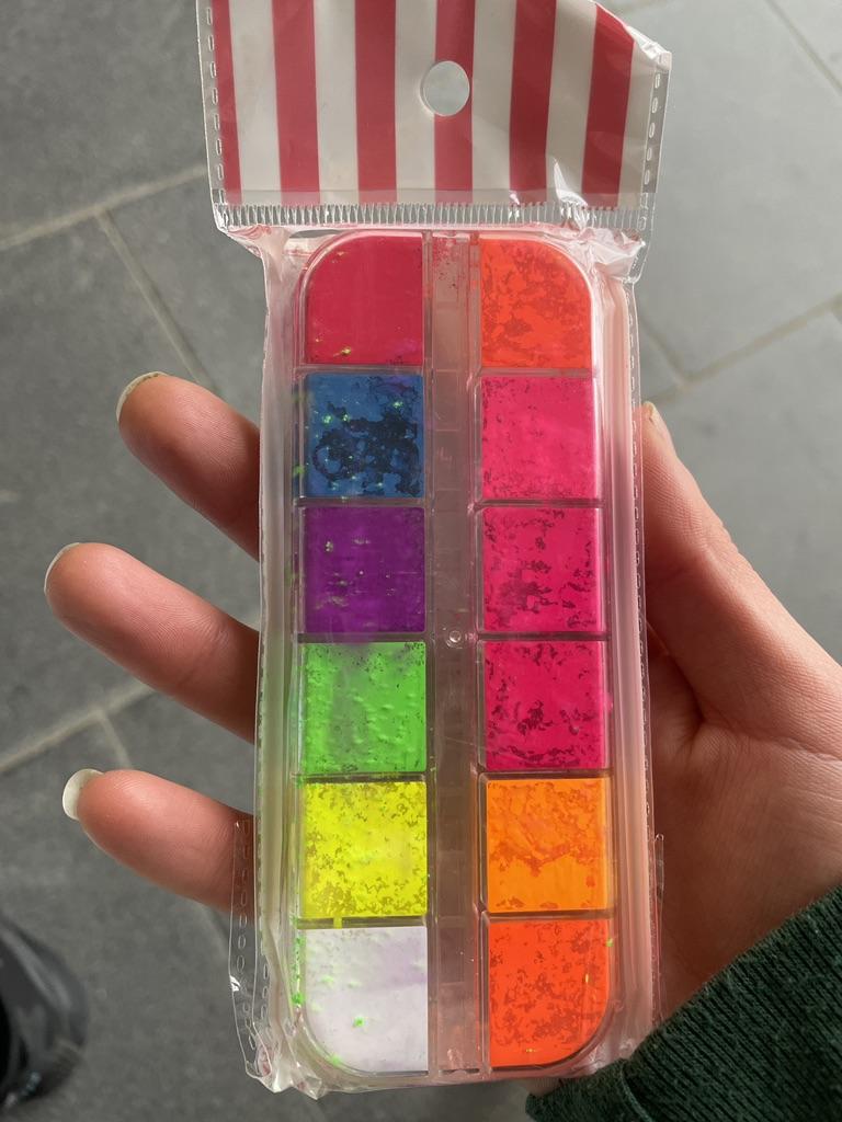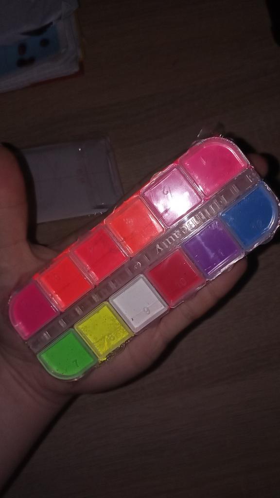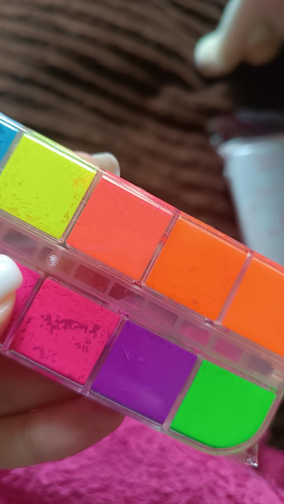 Pigmentii se racesc vizual Cutia este intreaga, pista nu a fost urmarita, coletul a fost intarziat Nu toate numerele sunt pufoase, dar în general pigmenții par a fi strălucitori și suculenți În general, sunt mulțumit, voi adăuga după ce îl voi încerca Voi adăuga: este greu de aplicat ca umbre, praf, peste tot în pigment, dar nu acolo unde este nevoie. Nu acoperă strâns, lasă goluri. Nu ține foarte bine nici măcar pe bază. Poate voi încerca să fac un eyeliner din acești pigmenți. Pentru o sedinta foto, nu o recomand pentru utilizare normala ca machiaj, mai ales ca prima paleta, pentru ca poti sa urasti machiajul in general 😅
