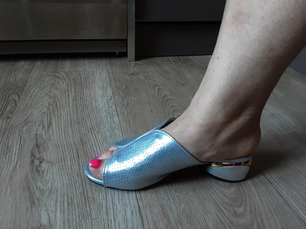 Papuci de femei marime mare sandale cu toc gros in toc piele moale purta jumatate drag auriu argintiu