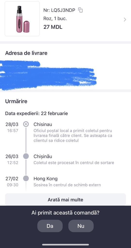 A ajuns in 5 săptămâni. Este ce spune și în reclamă. Aștept să-l testez. Am văzut recenzii care spuneau că picură și se scurge parfumul din el, dar la mine nu s-a întâmpla nimic. Pompa de umplere merge chiar bine. Recomand furnizorul.