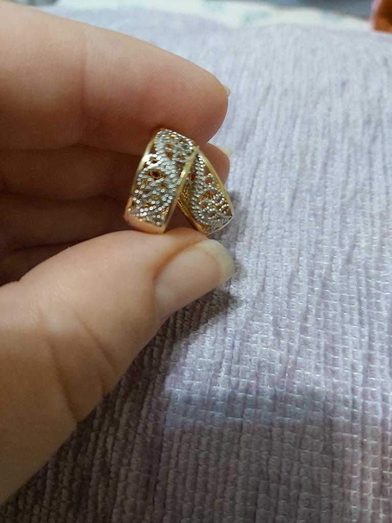 Buna din nou. Am comandat acești cercei și i-am primit cu destul de mult timp în urmă, iar acum mă prind din urmă! Sunt de culoare aurie, nu prea mari, dar elegante si adauga farmec! Sunt foarte multumit de aceasta achizitie! MULȚUMESC ȘI ECHIPEI JOOM! 👌👍🌹