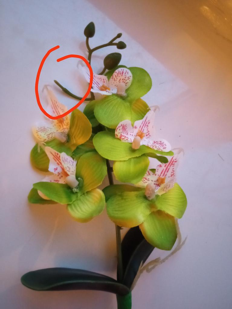 Petalele de orhidee sunt făcute foarte neglijent, lipsește deloc un mugur din vârful ramului, lucru foarte stângaci. Dacă aș fi știut că va veni o astfel de floare, nu aș fi cumpărat-o niciodată cu banii aia! Dezamăgire totală!