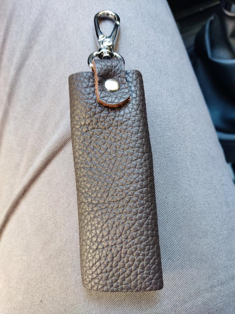 Piele naturala, super calitate. Dar inelul în sine din mijloc nu este foarte convenabil amplasat, ca în lateral, astfel încât cheile ies în lateral.