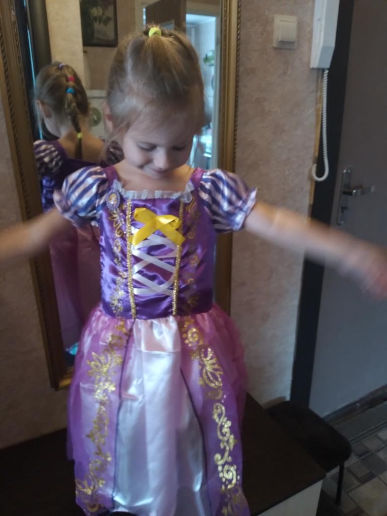 Fără îndoială, Benedetta se va transforma într-un timp într-o prințesă Disney 🤣 Acesta poate fi folosit, evident, ca costum de carnaval sau de Halloween, dar Benedetta iubește atât de mult prințesele Disney încât orice scuză este bună pentru a purta această rochie.. Acum, prințesa ei preferată este Rapunzel! Rochia este din acril si are designul originalului, materialul este bun, rezistent, culorile sunt luminoase, broderia este destul de finisata. Este o rochie lunga dintr-o bucata, as spune ca pentru pretul cheltuit, raportul calitate/pret este peste orice asteptari. 😍 Lungimea pe care am luat-o este buna pentru 3-5 ani, 120cm. Obiectul a sosit cu expediere urmărită, împachetat într-un mod excelent 🔝📦 ajungând la mine acasă, în doar 15 zile lucrătoare. Considerați utilă această recenzie? Anunță-mă și dacă îți place, URMATĂ-MĂ! 👉🏻 Mă puteți găsi și pe Instagram @re_atlas