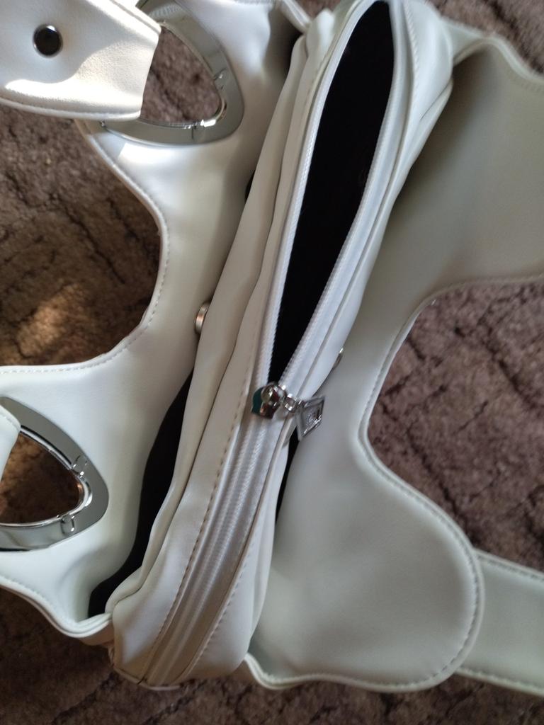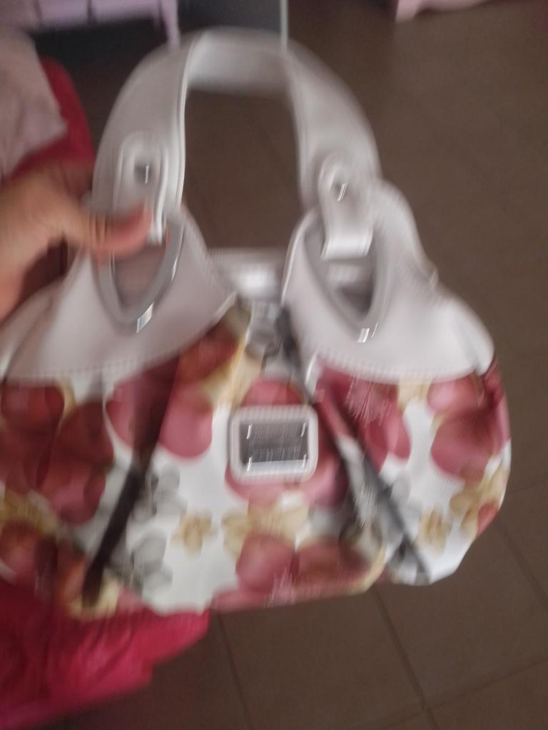 Geantă frumoasă de purtat doar la încheietura mâinii sau la mâini, dar nu și pe umăr. Material exterior sintetic. 4 buzunare interioare și zero la exterior. Primit în Elveția VD