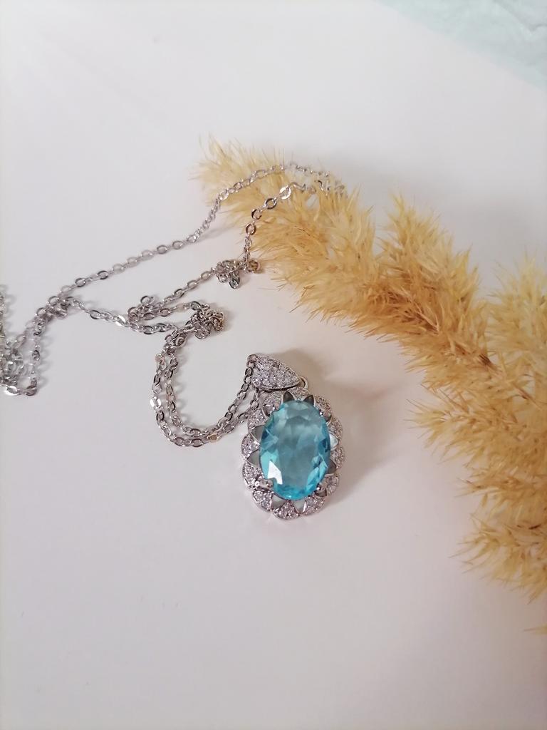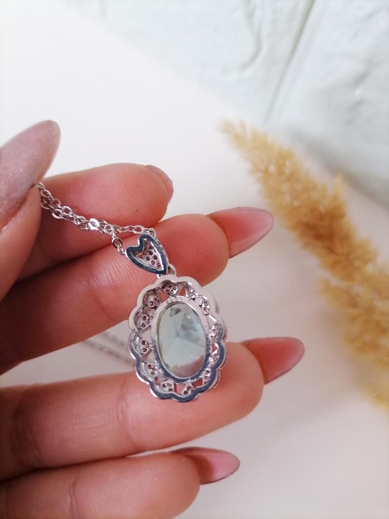 Acesta este cu siguranță un colier frumos. Este foarte lucios si usor. Oricum de aproape, pe spatele cristalului albastru, este gol și dens și arată puțin pe partea ieftină. Doar ceva de reținut.