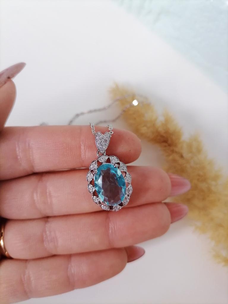 Lindon Colier elegant de bijuterii cu pandantiv din safir de formă ovală pentru femei, cadou de petrecere de nuntă