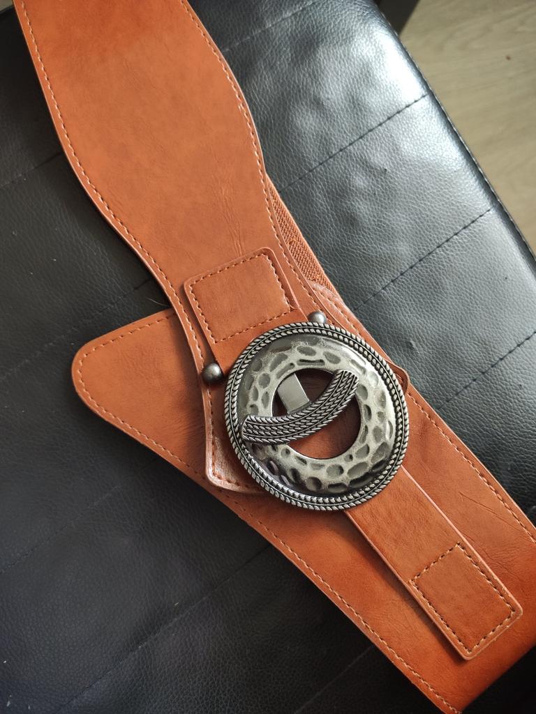 Super centura! La început am crezut că va fi prea mic, dar era o bandă elastică decentă la spate și totul se potrivea. Piele. Accentuează talia. Dar nu atât de larg pe cât pare în imagine, ține cont de asta.