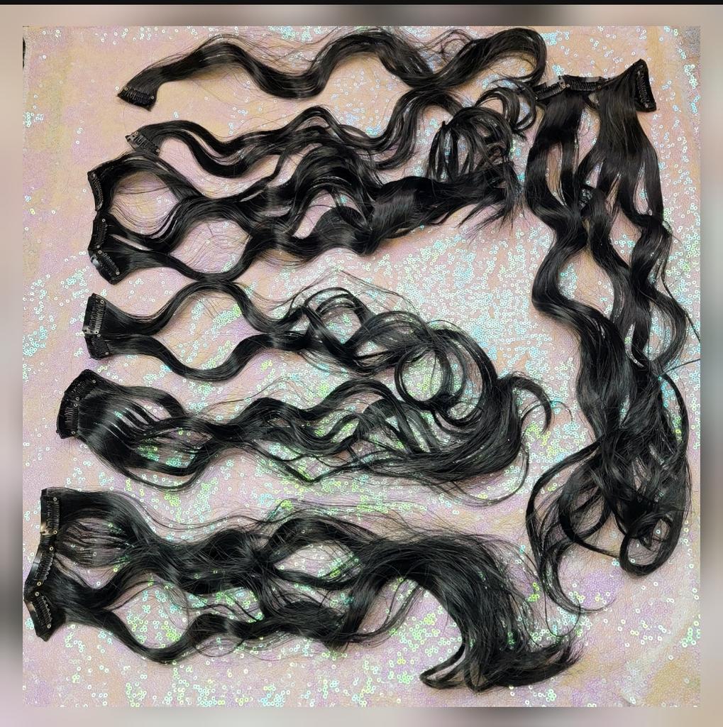 Extensiile de păr ondulat sintetic se potrivesc perfect cu textura și culoarea părului meu :) Au 22 inci lungime și au adăugat mult volum părului meu :) Sunt sintetice, dar arată și se simt la fel ca părul uman, nu au atât de strălucitor. aspect fals pentru ele pe care o au multe alte extensii de păr din silicon. Au mai multe culori din care să aleagă. Clipurile sunt ușor de deschis și închis și de alunecat în păr și sunt confortabile de purtat pentru utilizarea zilnică.