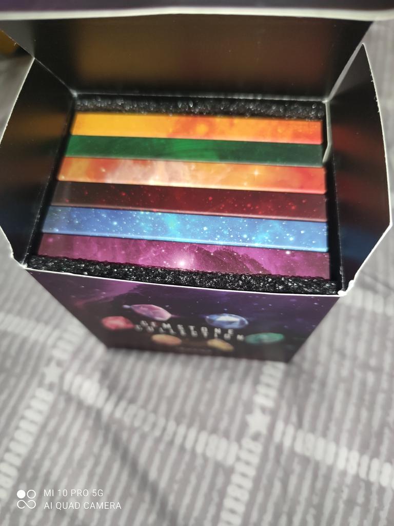 Paletele foarte frumoase. Pe fiecare panou de culori mate si irizate cu 1 sclipici. Culorile durează toată ziua. Fără reziduuri la pauză. Culorile se estompează bine. Calitate buna pentru pret.