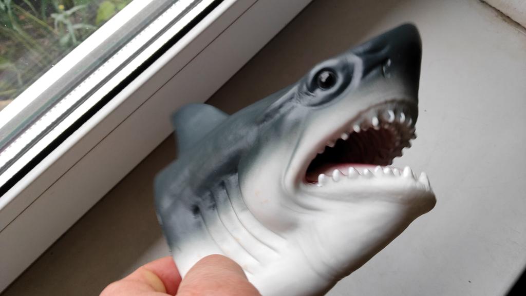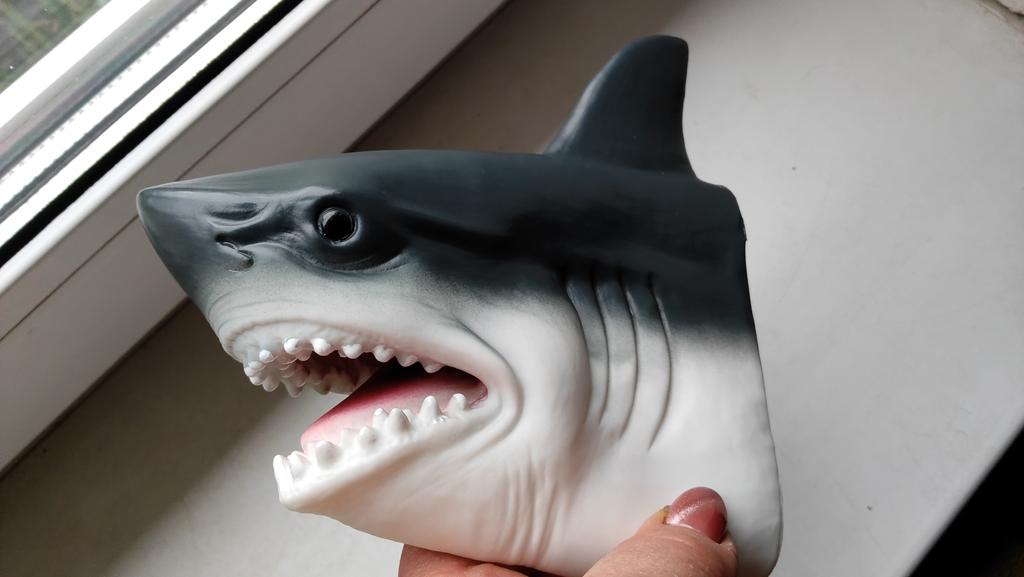 Rechinul este foarte realist, viu. Dar cauciucul este foarte rigid. Nu voi asambla păpuși similare pentru teatrul de acasă