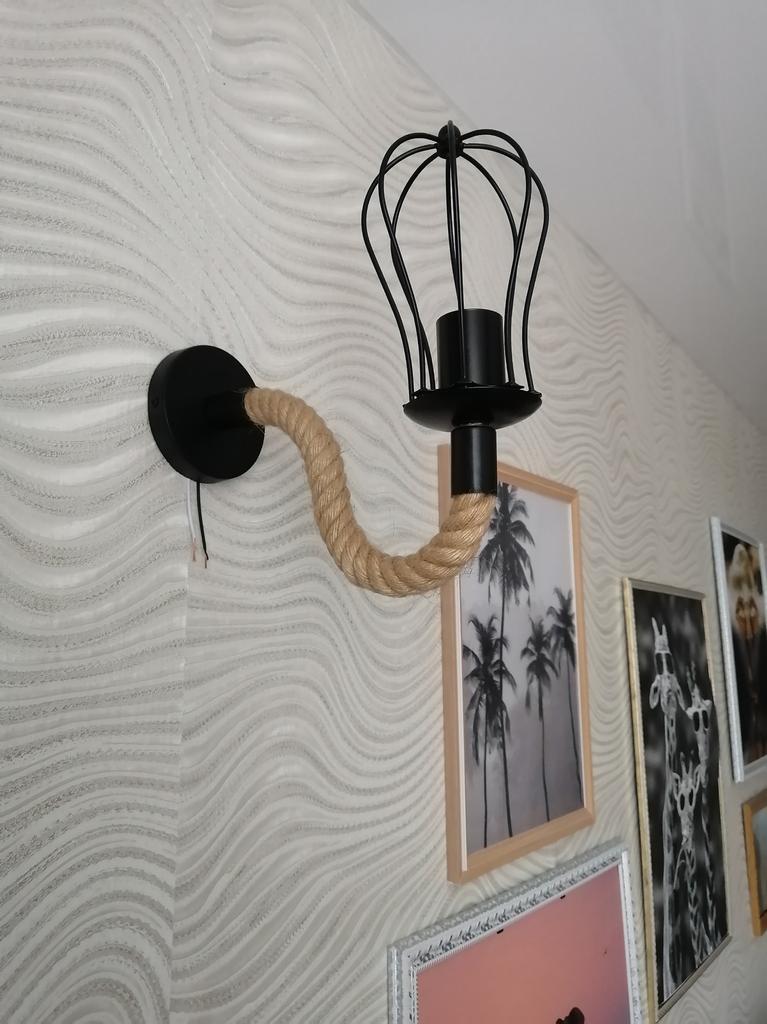 Lampă de perete industrială cu frânghie de cânepă retro, decor vintage, corpuri de iluminat pentru sufragerie, aplice de interior, iluminat decorativ