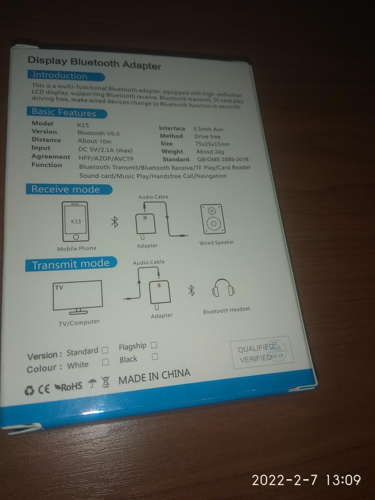 VAORLO Afișaj LCD Bluetooth 5.0 Transmițător audio Receptor USB 3,5 MM Muzică stereo Adaptor wireless 2-IN-1 Plug and Play TF Card Redare pentru căști
