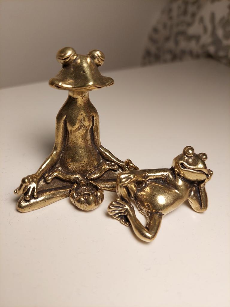 Puntos Vintage din alamă așezată statuie broască zen sculptură suport pentru tămâie ornament de birou
