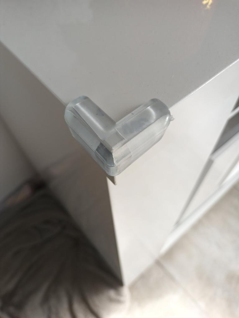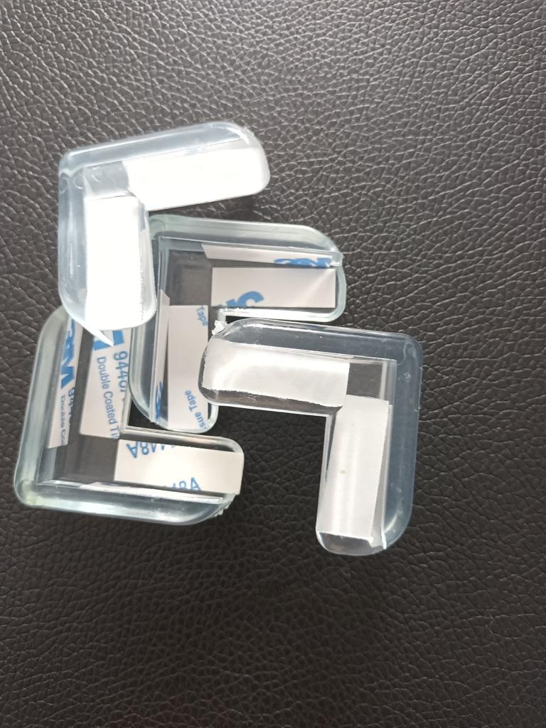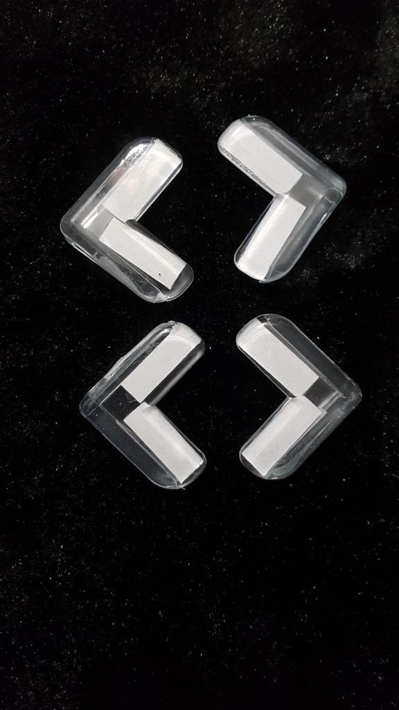 4 coltari transparente pentru mobila. 4 felii de bandă adezivă pe fiecare colț. Odata lipit, sta bine pe coltul mobilierului. Colțurile sunt plate și nu ies deasupra blatului. Vă recomand.