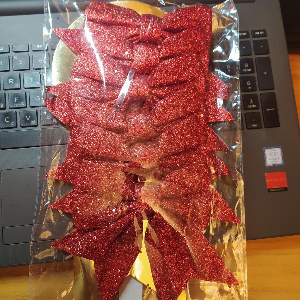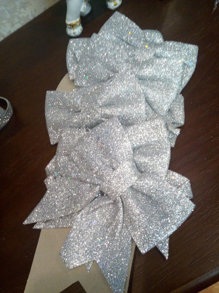 Fundite de Crăciun - sunt pur și simplu minunate, mari, frumoase😍))) Astfel de funde îți vor decora bradul de Crăciun🎄))) Există 6 bucăți într-un pachet. Recomand produsul! Am mai comandat un pachet.