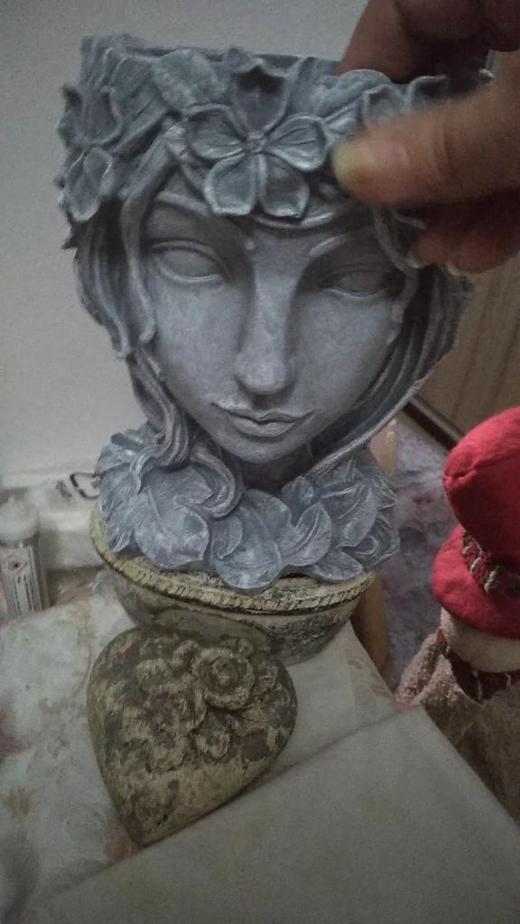 Fata Sculptura Suculenta Cap de Cactus Ghiveci pentru plante Container Gri
