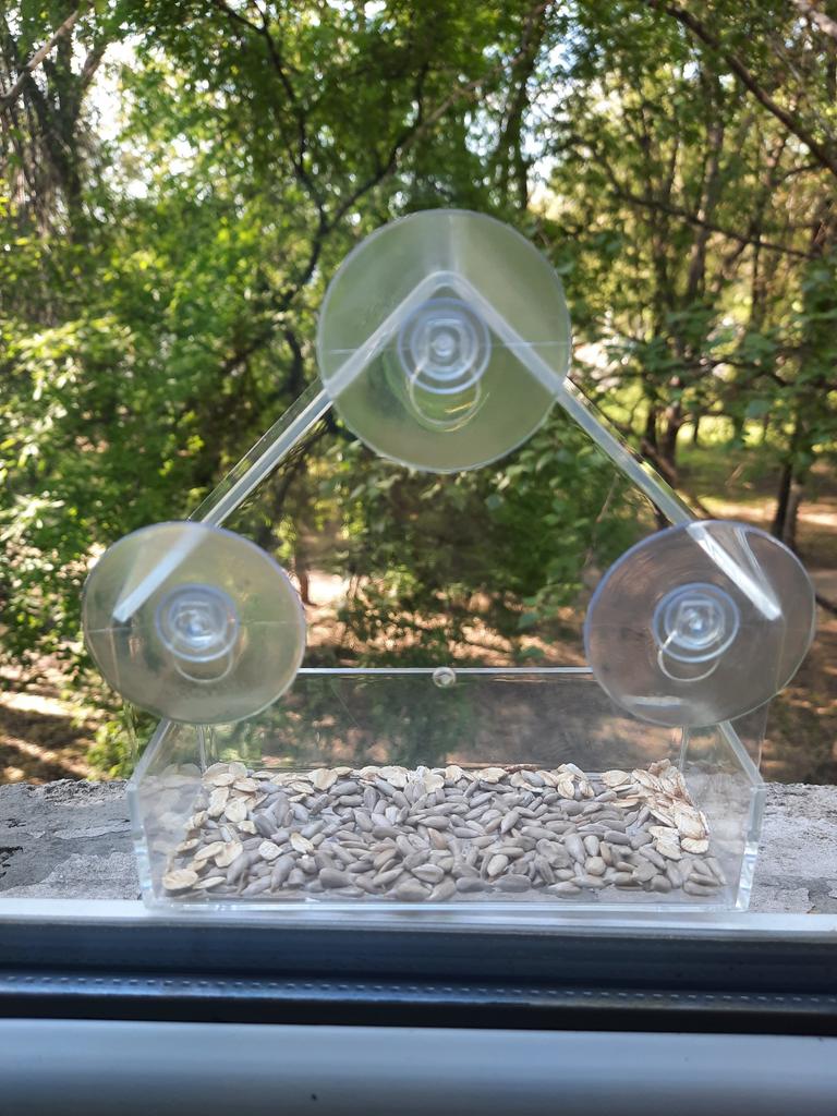 Hranitoare pentru pasari S-a atașat perfect, dar am întins suplimentar firul pentru asigurare Mai târziu, voi coase ceva moale pentru labe, pentru că este incomod pentru păsări să stea. Mulțumit de produs