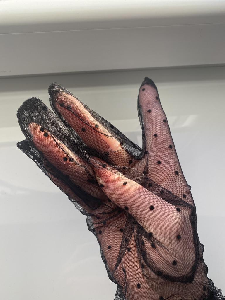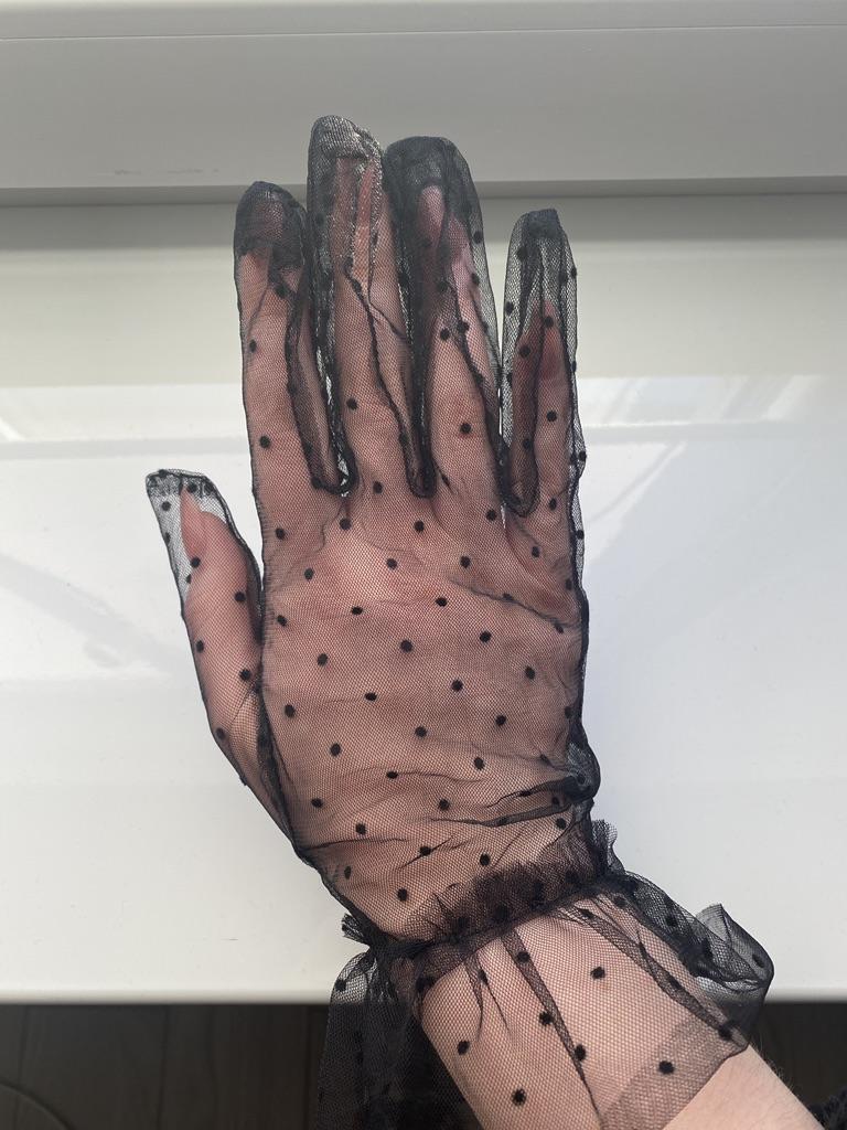 Dantela Mănuși scurte Volană Strat ornamental Tulle Mesh Semi transparentă Negru Buline