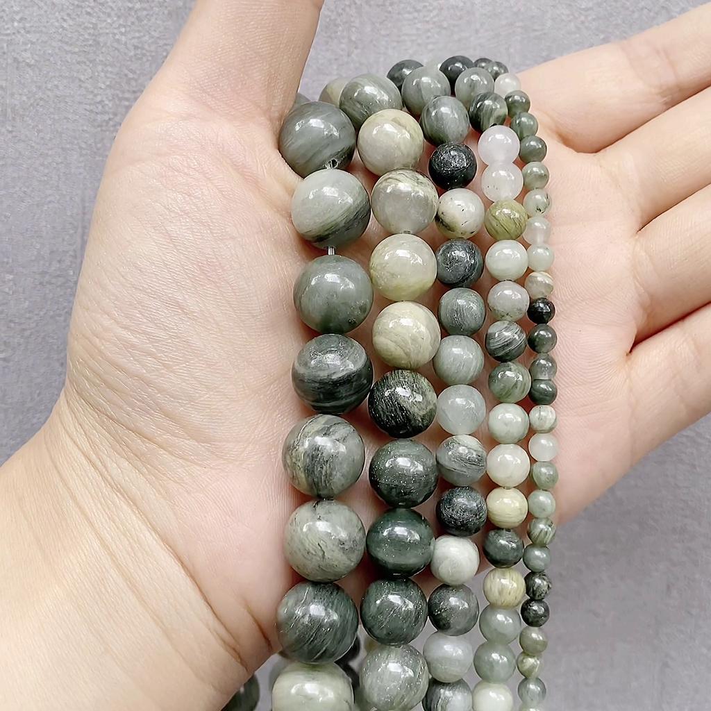 Mărgele rotunde din marmură din piatră naturală în vrac, iarbă verde, pentru realizarea de bijuterii, brățară cu farmec, șuvițe de 15 inchi