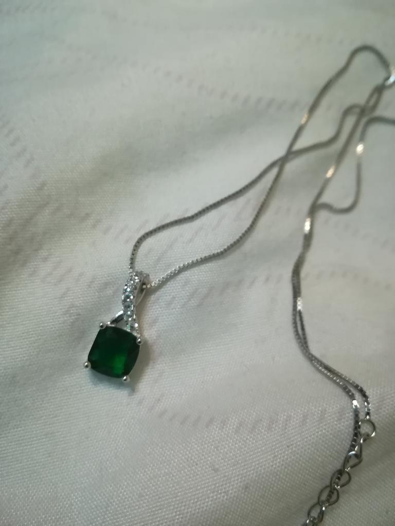 Colier din argint 925 (are sigiliul si il vezi in ultima poza daca te uiti atent). Aveam deja același colier și pandantiv dar cu piatra roz și îl folosesc foarte mult așa că l-am comandat și pe acesta în verde pentru a-l combina cu diferite ținute. Nu au nimic de invidiat celor pe care ii poti cumpara din magazine. Le găsesc elegante și feminine. Îmi place foarte mult calitatea, chiar și a lanțului. Nu se urat la udare, fac baie cu ei si fara probleme. Vin și cu cutia lor pentru a le depozita și cu o capră pentru a le curăța.. Perfect și dacă o vrei cadou 👌🏻