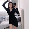 Autumn Dress Knitting Women Dresses V-Neck Sexy Knitted Dress Long Sleeve Bodycon Sheath Pack Hip Dress