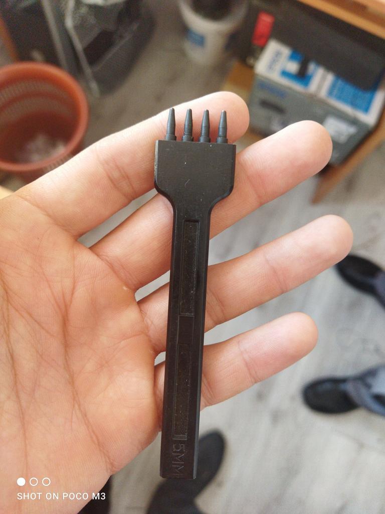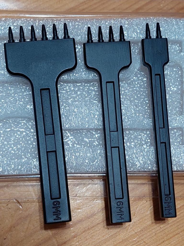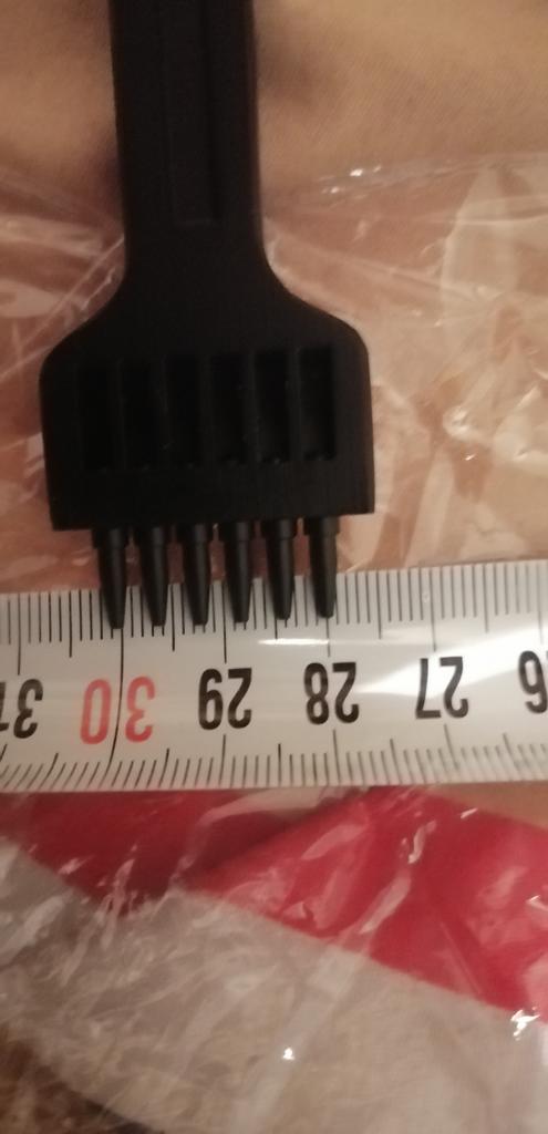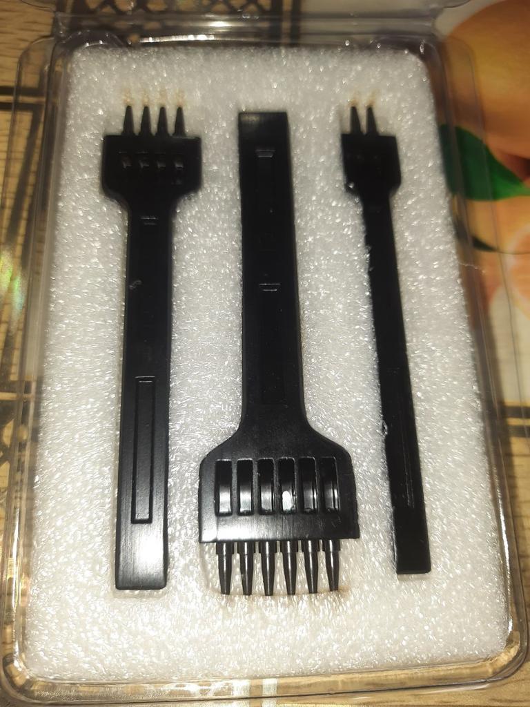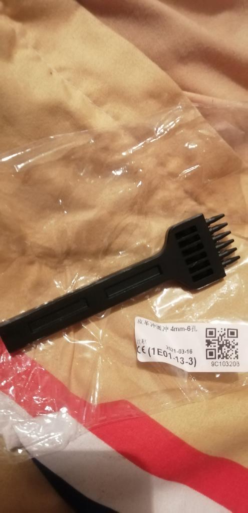 Poanson (poanson rotund) pentru piele, 6 mm, 2, 4, 6 dinți. Fabricat cu înaltă calitate. Dintii sunt scobitori, prin (restele de piele perforata ies prin deschiderea superioara a dintelui). sunt simple și comod de lucrat (poansonul nu a încărcat prea mult), găurile de testare sunt uniforme. Pret-calitate este adecvat. Recomand instrumentul și vânzătorul. Mulțumesc Joom!