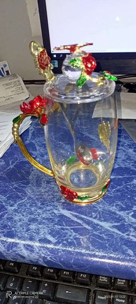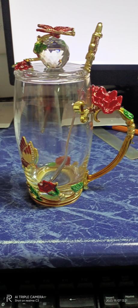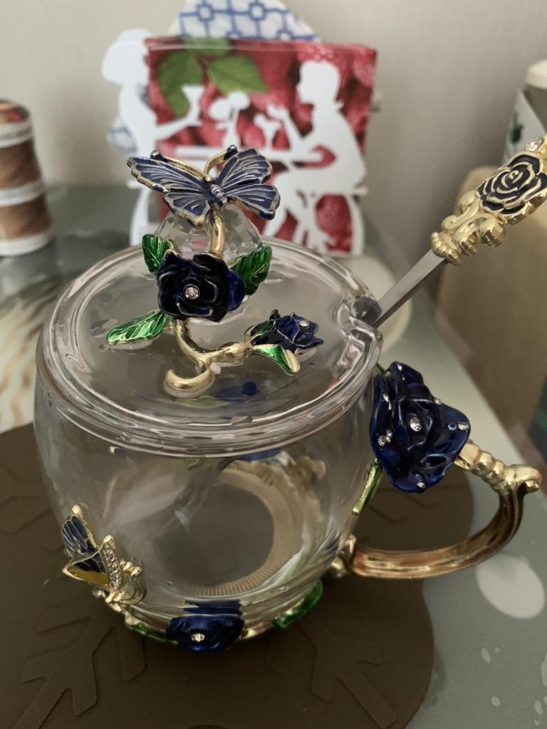 Arată chiar foarte frumos!!!^-^ Și capacul este foarte practic împotriva insectelor și menține căldura băuturii mai mult timp în pahar.