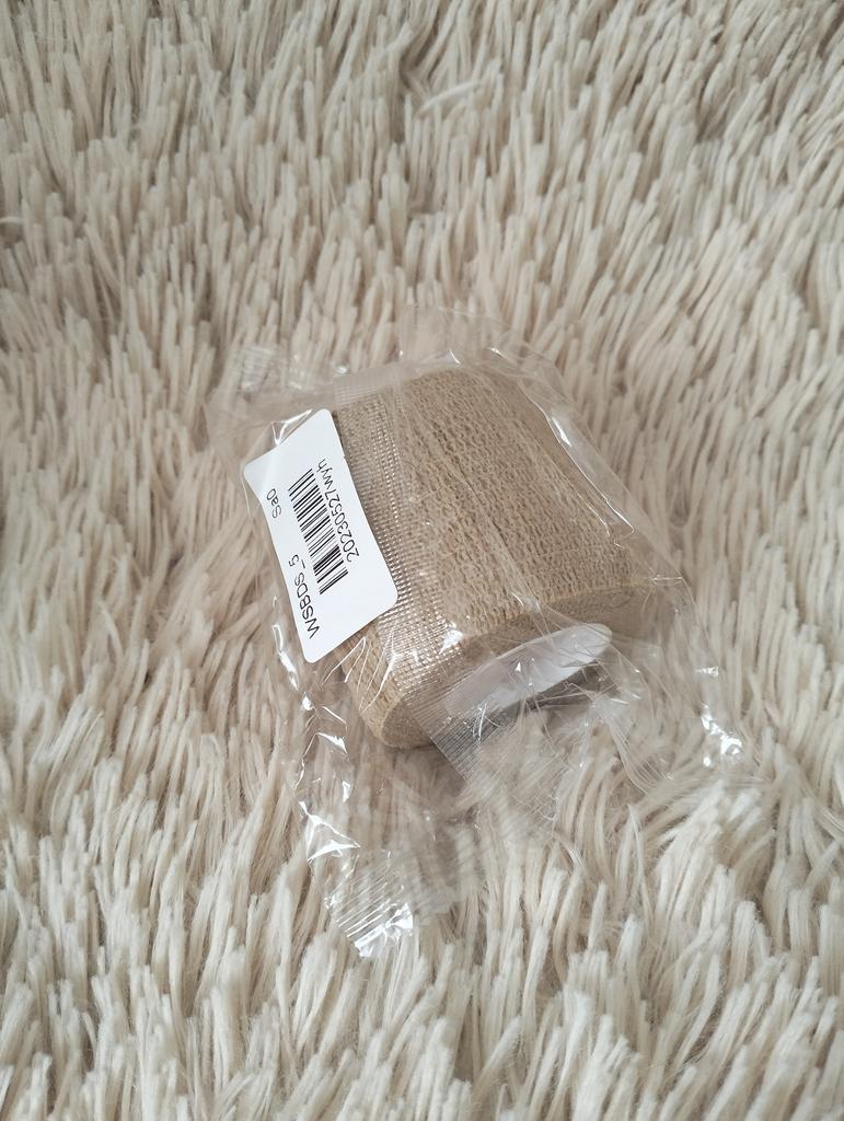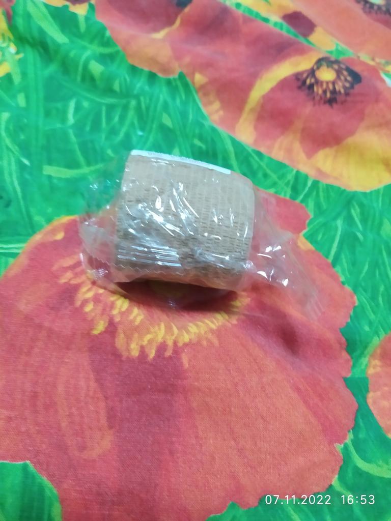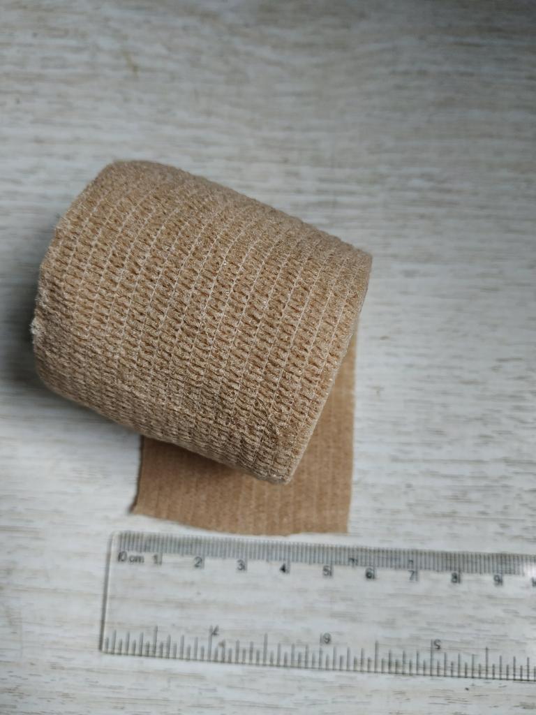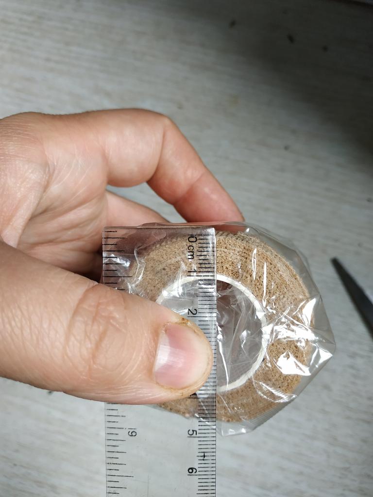 Bandă sport, 1 buc Lățimea benzii este de aproximativ 5 cm. Lățimea scheletului - 5 cm. Grosimea benzii de rănire este de 1 cm. Culoare: kaki (carne). Nu este posibil să verificați lungimea completă a benzii, deoarece atunci trebuie să fie complet desfășurată. Lățimea și culoarea corespund comenzii mele. Banda este elastică (asemănătoare cu o bandă de cauciuc). O parte (interior) cu un strat adeziv.
